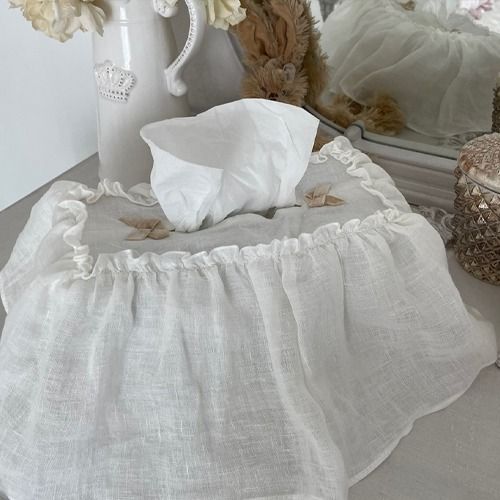 - 레이스 꺄뜨린 티슈 케이스 린넨 티슈커버 티슈케이스 린넨티슈케이스