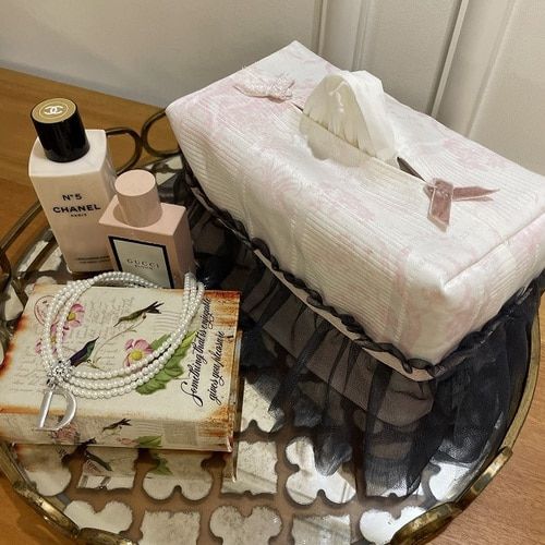 - 프렌치 엔틱 프릴 인테리어 각티슈 커버 누아르 블랑 아이보리 핑크 컬러