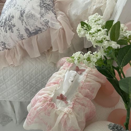 - 각 티슈 커버 프렌치 프릴 티슈커버 로즈가든 화이트 핑크 컬러 국내 제작