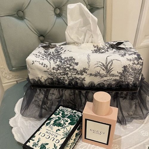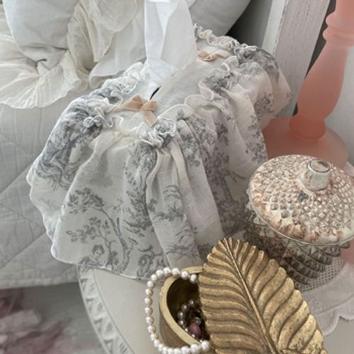 - 프렌치 엔틱 프릴 티슈 케이스 커버 누아르 블랑 그레이 컬러 인테리어 소품