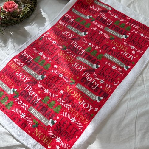 - 조이 드 노엘 크리스마스 핸드 홀리데이 메시지타월 레드 주방타월