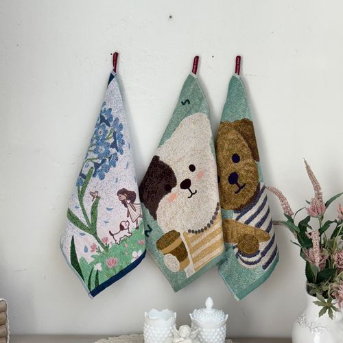 - 시앙 미뇽 토르숑 타월 3종세트 미니수건타월 토끼패턴 플라워프린팅 주방인테리어