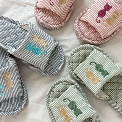 - 마이유 키튼 자수 코튼 슬리퍼 3중쿠션 층간소음방지 거실 실내화 디자인3종 3중쿠션 층간소음방지