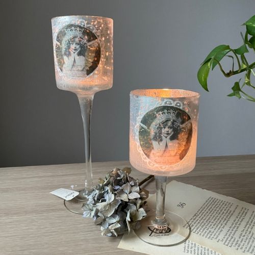 - 빈티지 스타일 글라스 유리 티라이트 스탠드 천사 촛대 캔들홀더 조명