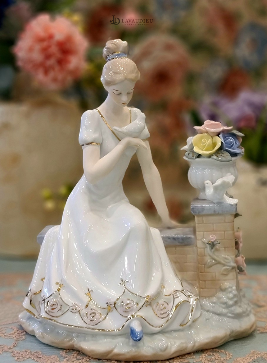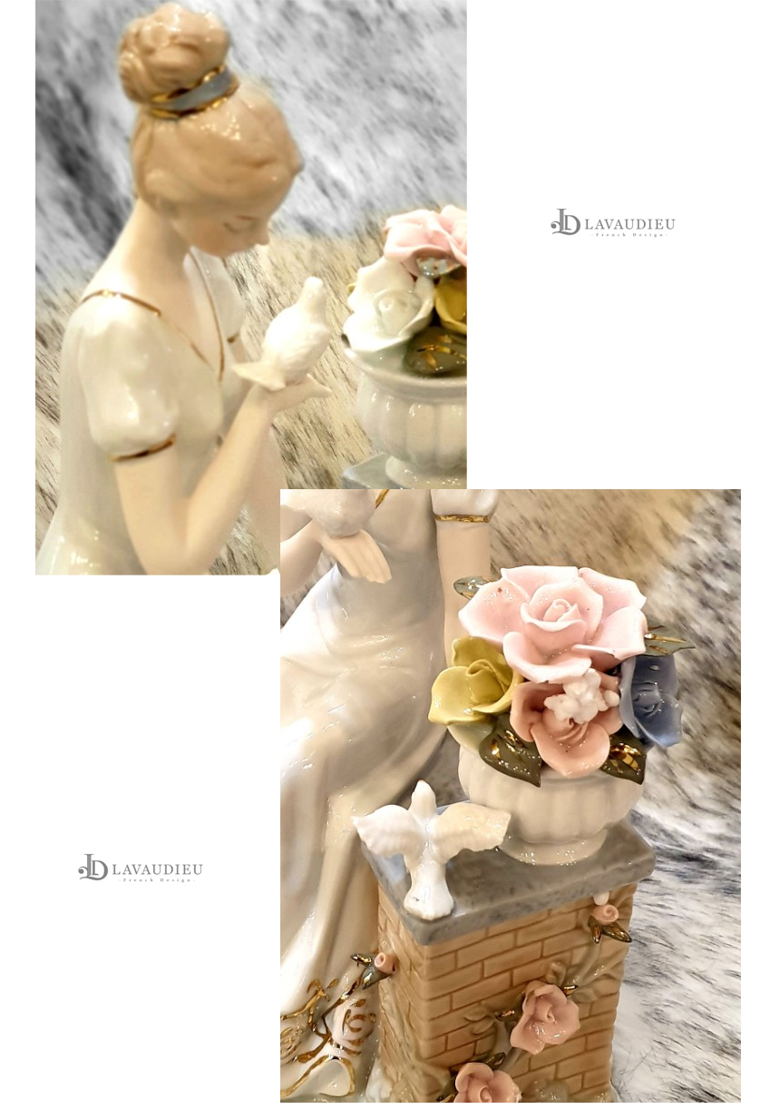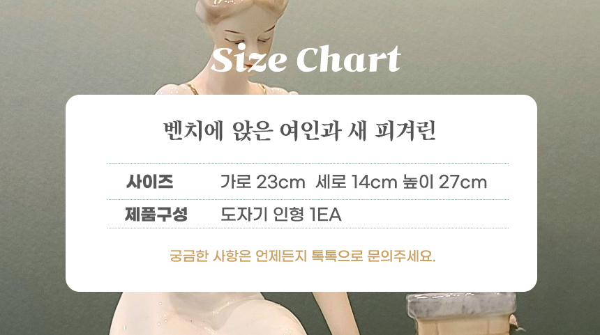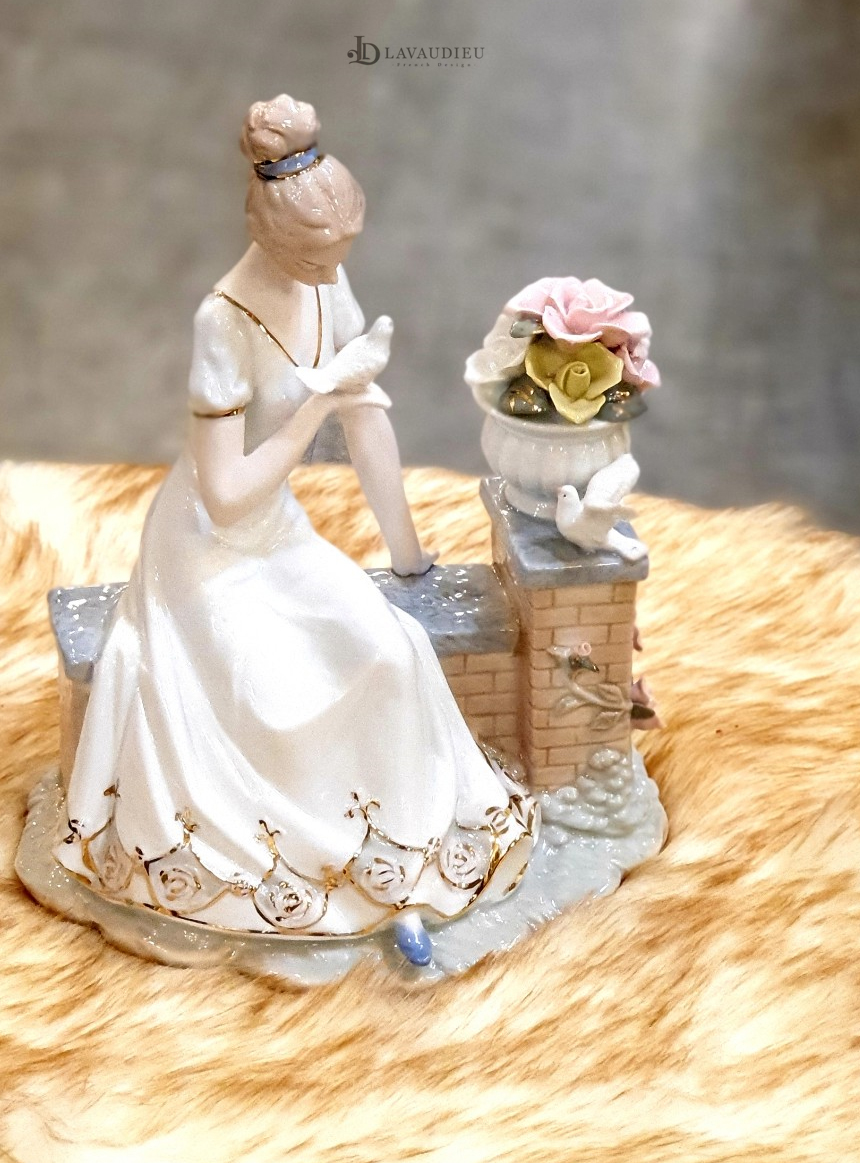 HOME > 장식인형,풍경,이젤,촛대 > 부엉이,도자기장식인형 > 벤치에 앉은 여인과 새 피겨린 도자기/세라믹 인테리어 장식 오브제 피겨린 고급 세라믹 인테리어 도자기 장식 인형
