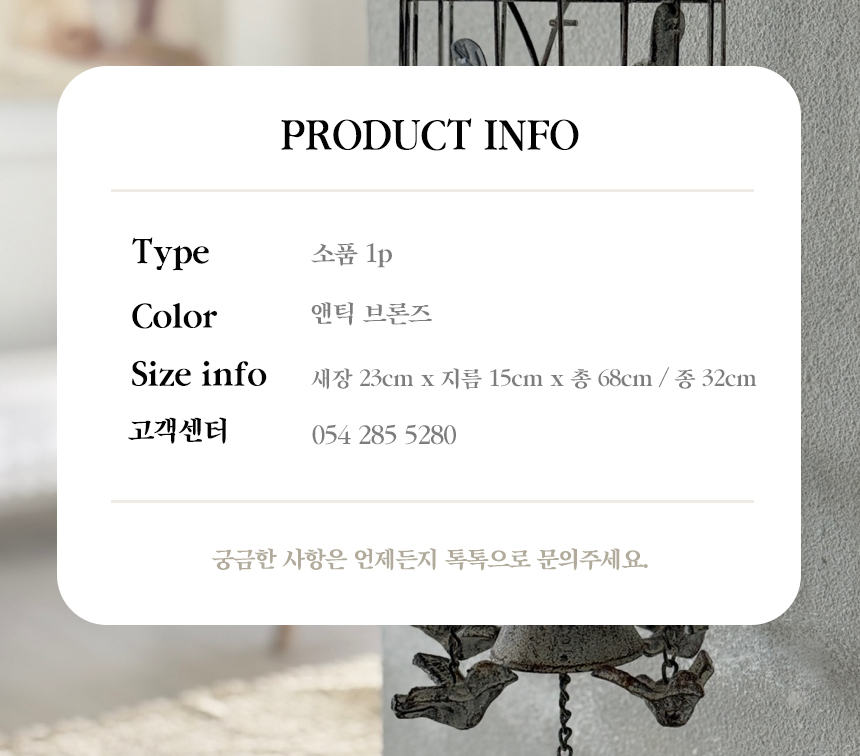 공간에 은은한 고풍스러움과 앤틱한 감각을 더해주어 시선을 사로잡는 인테리어 포인트 소품입니다.