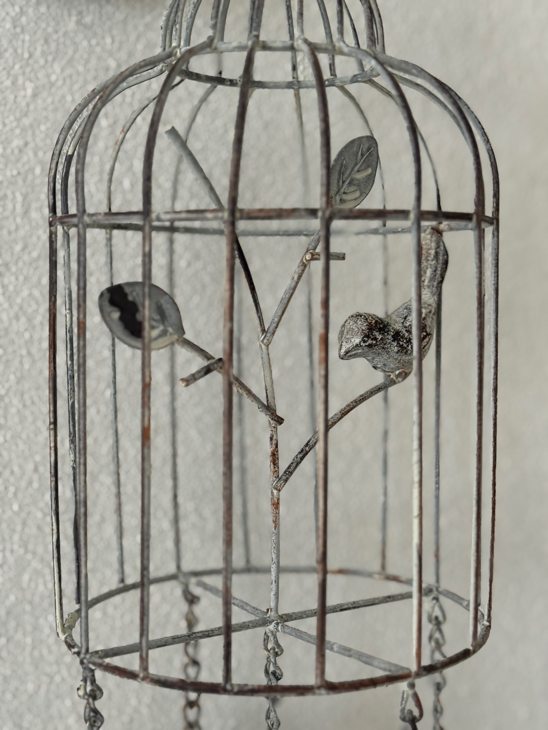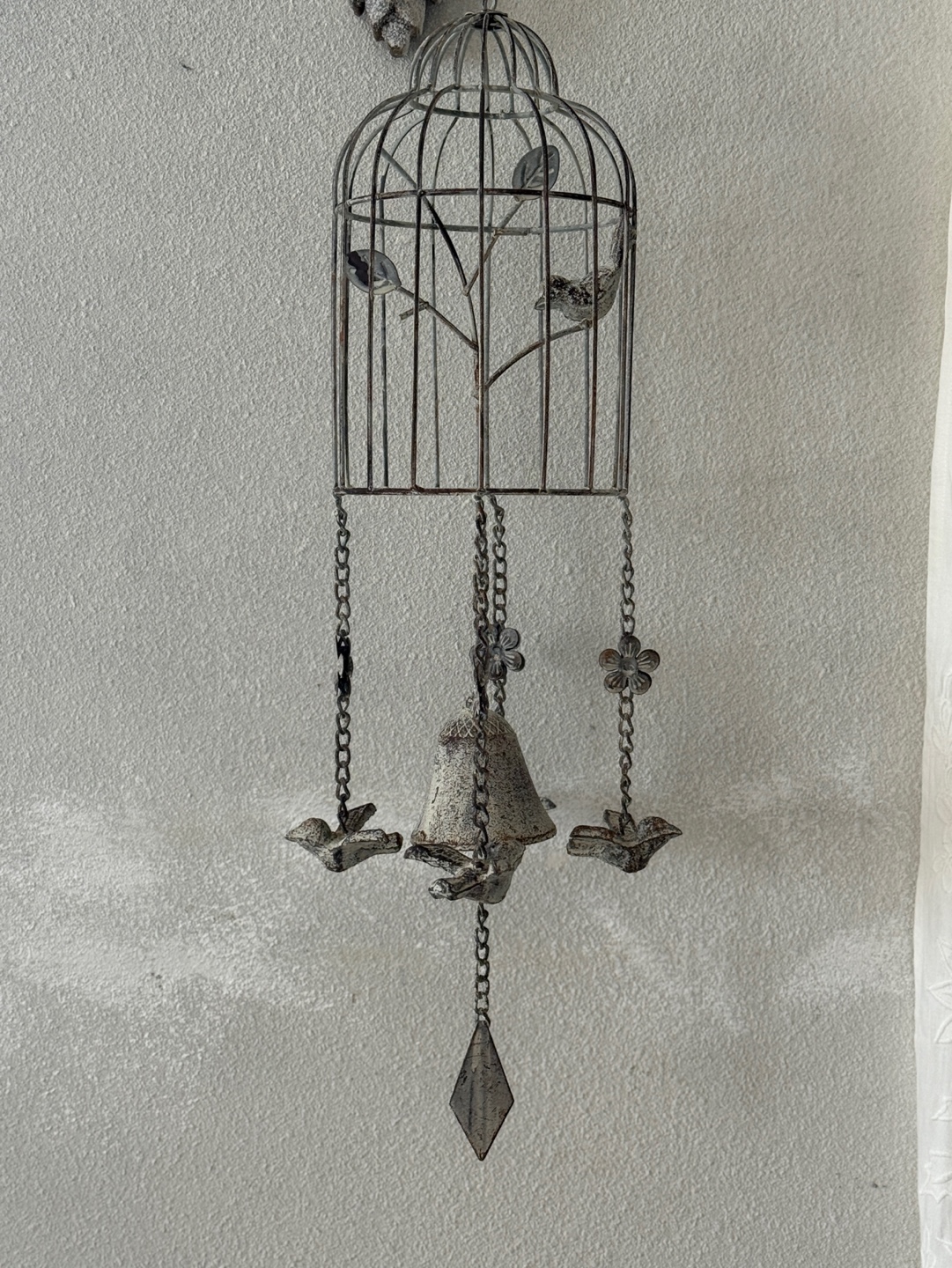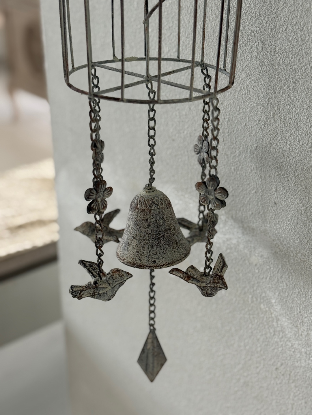 빈티지한 철제 새장과 종의 낭만적인 조화