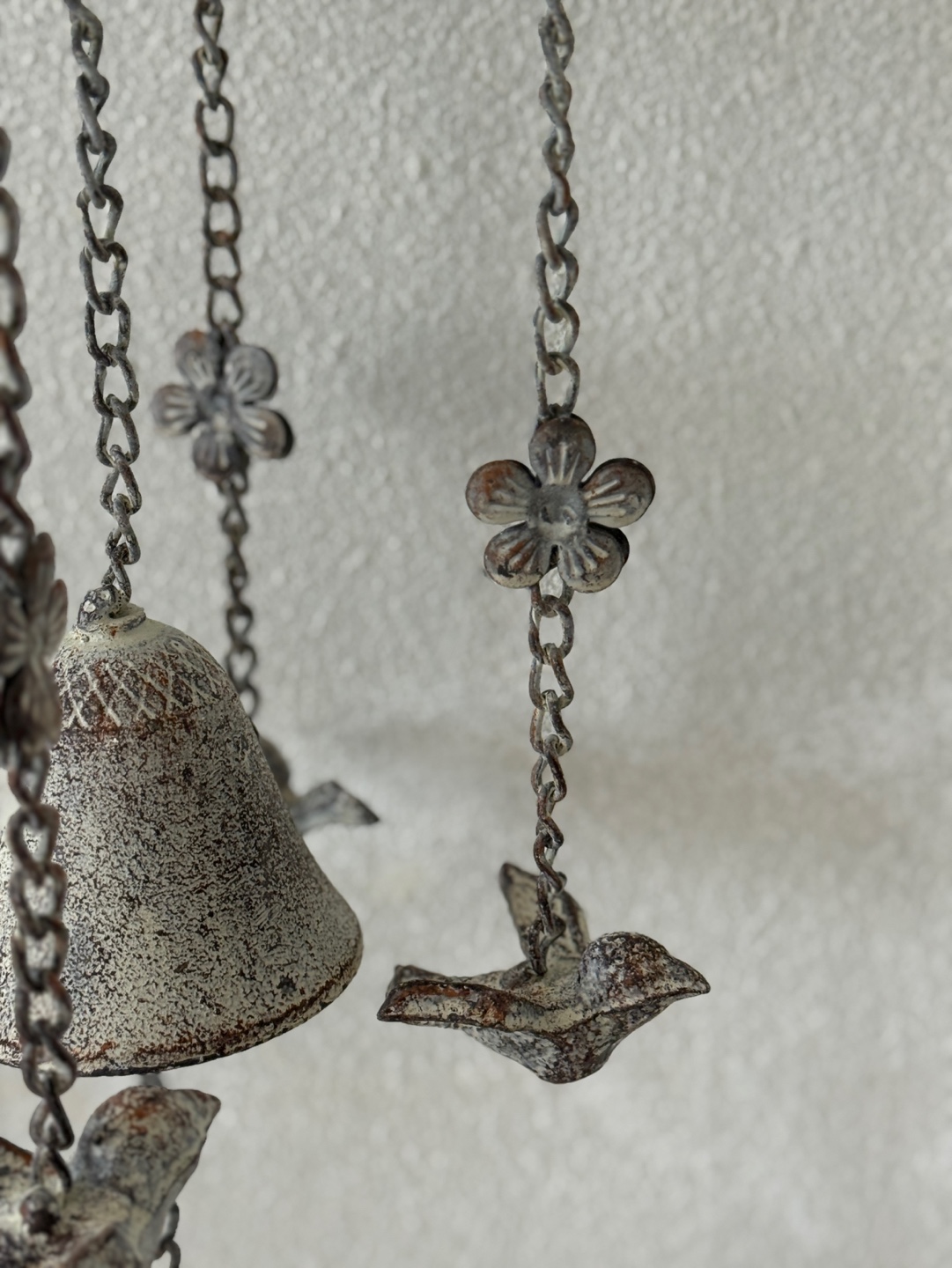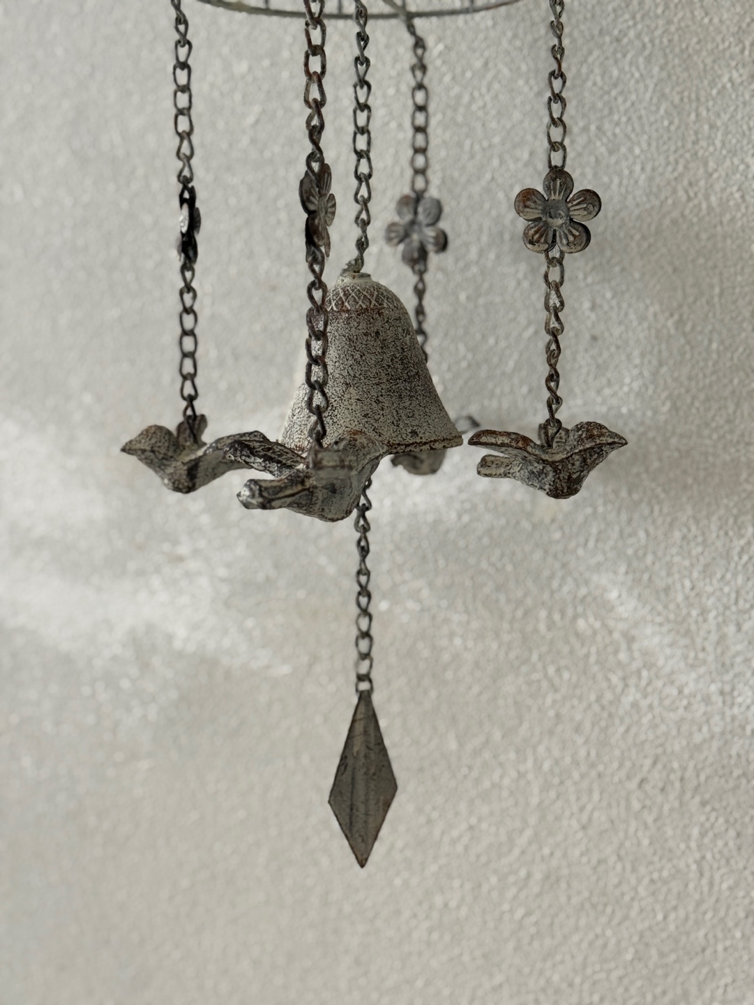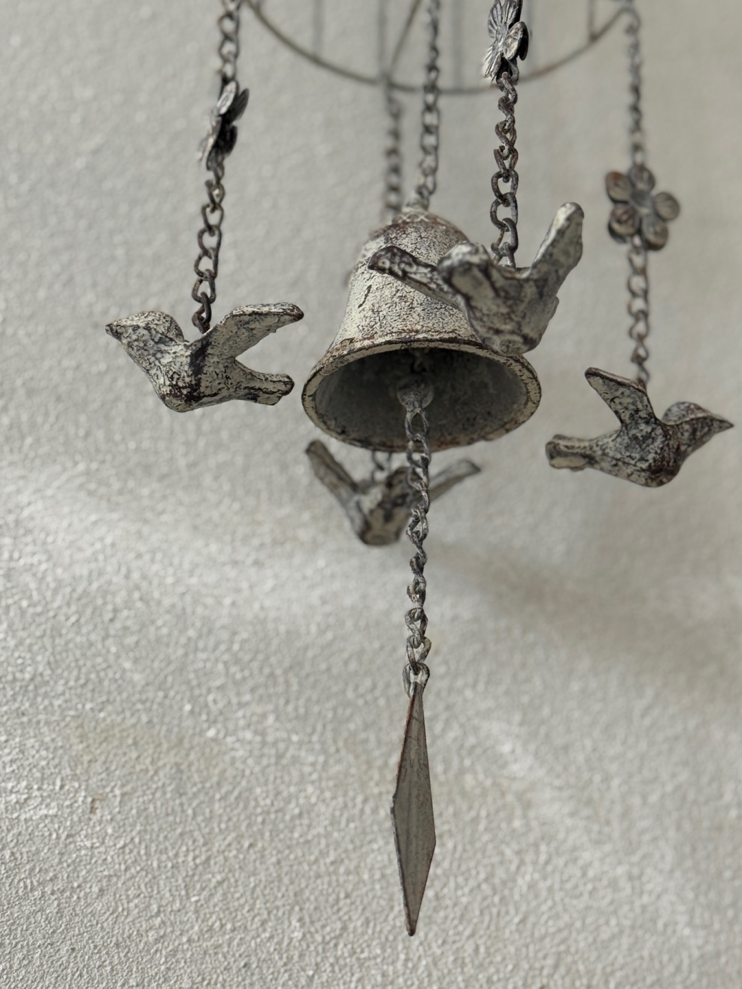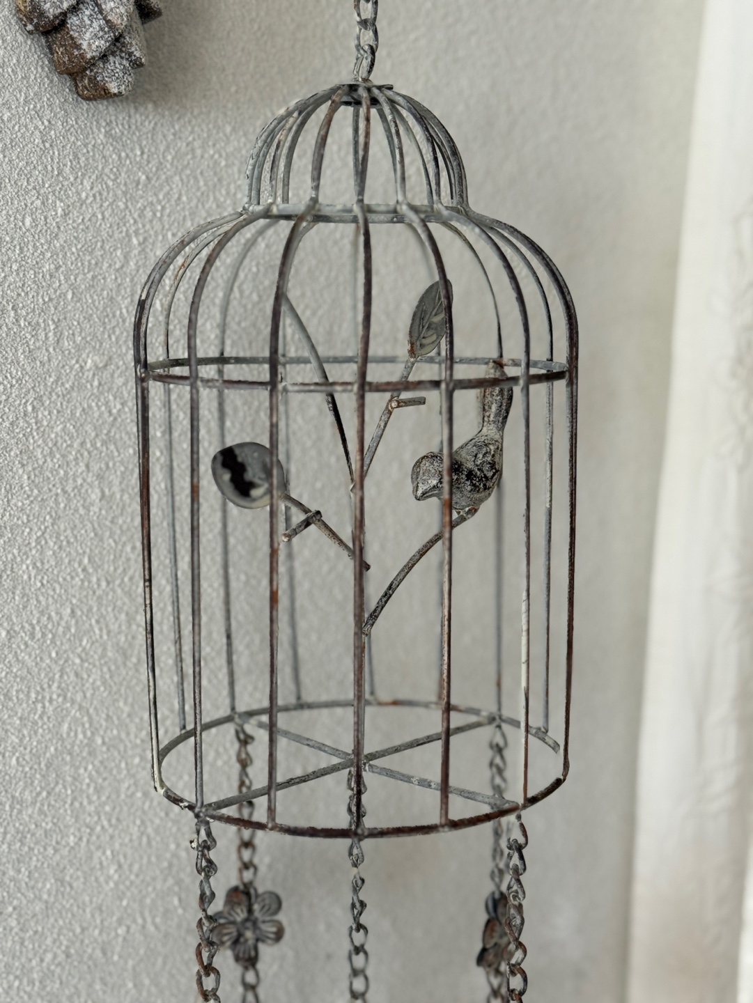 빈티지한 철제 새장과 종의 낭만적인 조화