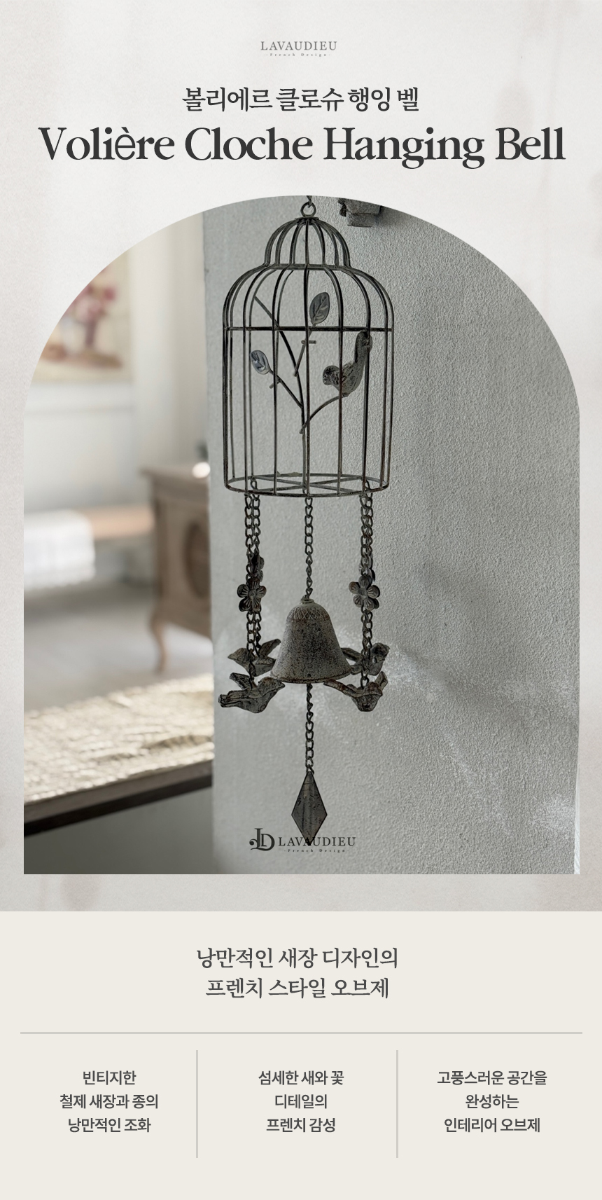 클래식한 철제 소재와 새장 모티브 디자인으로, 프렌치 감성의 우아하고 로맨틱한 분위기를 선사합니다.