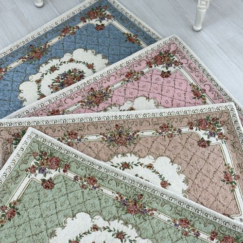 - 로즈 앤티크 플로럴 발매트 80x50 빈티지발매트 우아한러그 클래식홈데코