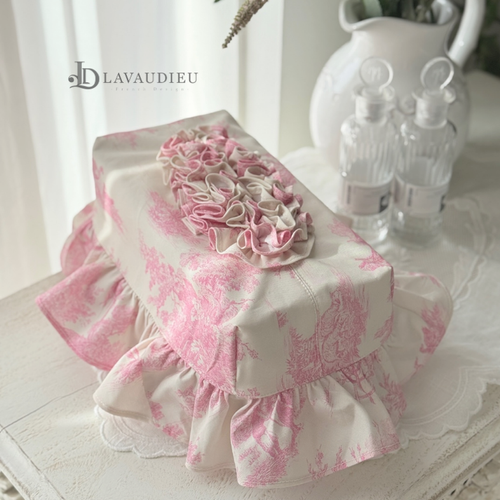 - 각 티슈 커버 프렌치 프릴 티슈커버 로즈가든 화이트 핑크 컬러 국내 제작