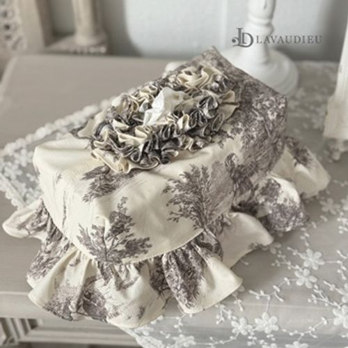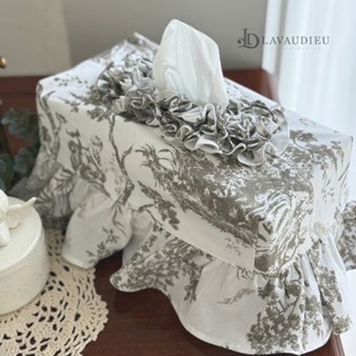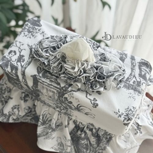 - 프렌치 엔틱 프릴 티슈 케이스 커버 누아르 블랑 그레이 컬러 인테리어 소품