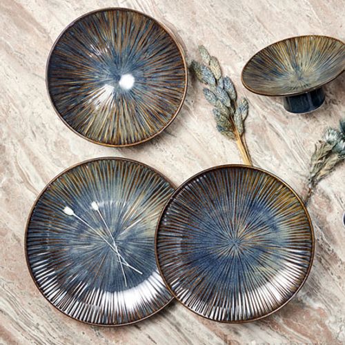 - 블랙 펄 푸른빗살 굽 접시 (小) (中) 플레이팅접시 고급식기
