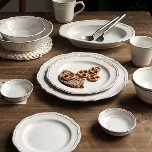 - 원형접시 5종 타원접시 프렌치식기 빈티지 화이트 앤틱 라인 시리즈