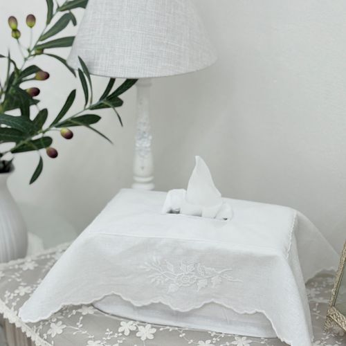 - 프렌치 클래식 플레르 화이트 자수 티슈커버 각티슈커버
