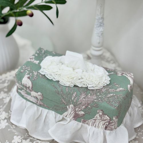 - 아줄 드 주이 티슈 포켓 프렌치 린넨 플라워 벽걸이형 티슈 커버