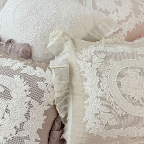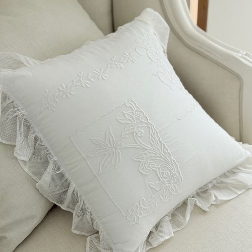 - 블랑쉬 로제 자수 쿠션 화이트 자수쿠션 레이스 러플 쉐비시크 프렌치인테리어