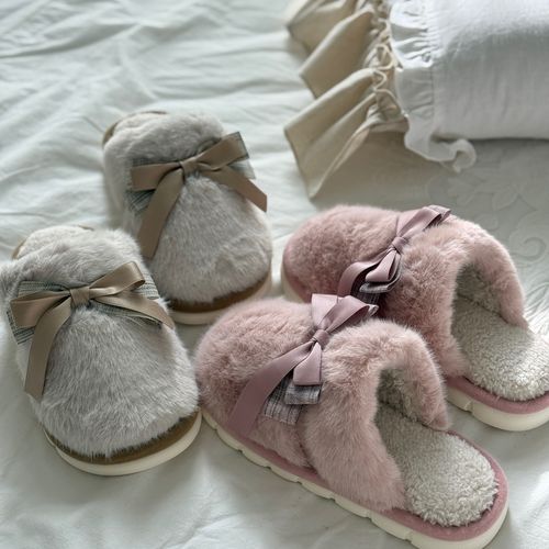 - 뮤제 시크 퍼 슬리퍼 (옴므) 남성용 슬리퍼 룸슈즈 가벼운 거실화 플 가죽 남성여성용