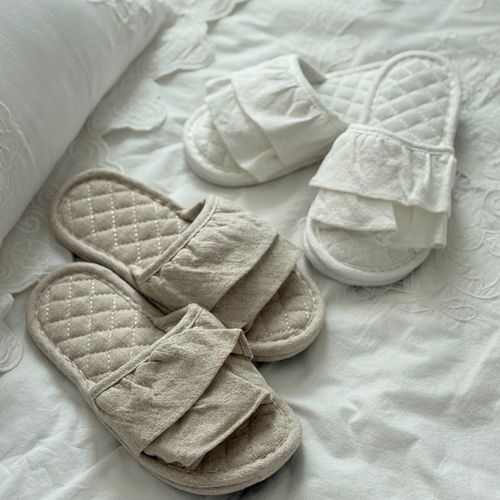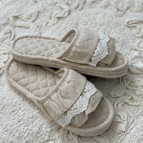 - 마리 레이스 린넨 실내 슬리퍼 2종 3중 쿠션 층간소음방지 거실화 린넨 퀼팅슬리퍼 거실화