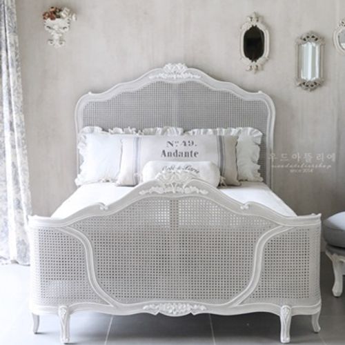- 프렌치 엔틱 쉐비 아망뜨 라탄 화이트 침대프레임 프렌치 쉐비가구