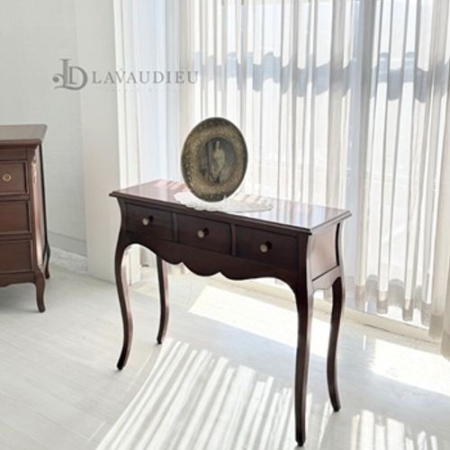 - 프렌치가구 엔틱 마호가니 원목 3서랍 슬림 콘솔 테이블