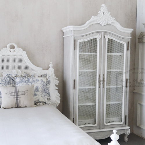 - 프렌치 엔틱 외문 철망 화이트 유리 장식장 프랑스 쉐비가구