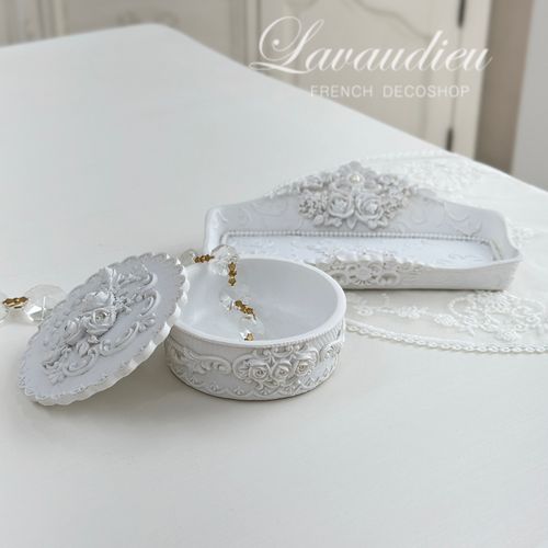 - 프렌치 화이트 로즈 주얼리 보석함 트레이 세트 인테리어 소품