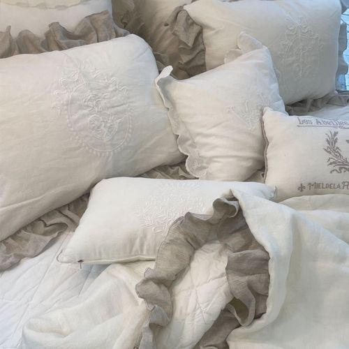 - 베르사유 모노그램 러플 쿠션 화이트 자수 레이스 러플 쉐비시크 프렌치인테리어