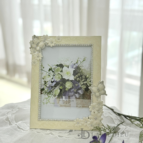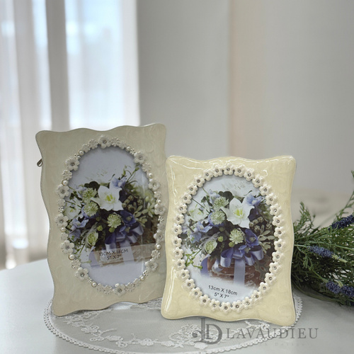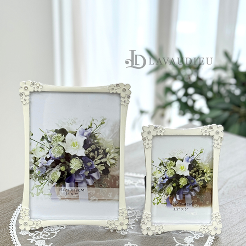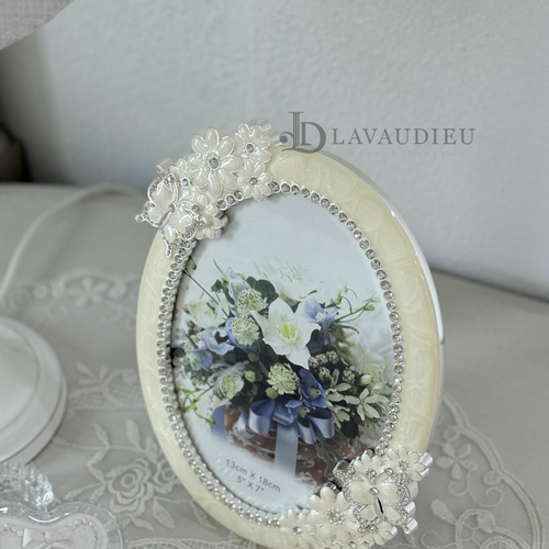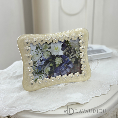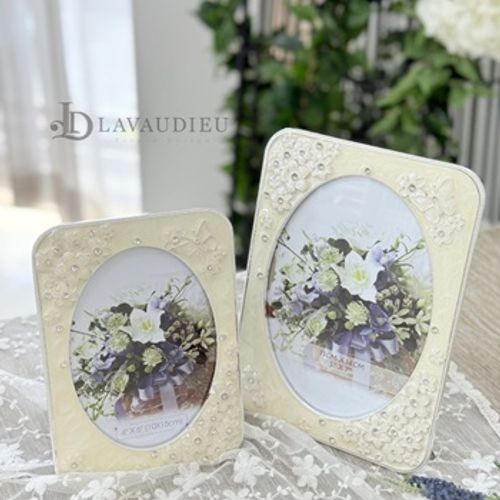 - 프랜치 엔틱 아이보리 데이지 큐빅 사각원형액자 탁상용 프레임 2사이즈 인테리어 소품