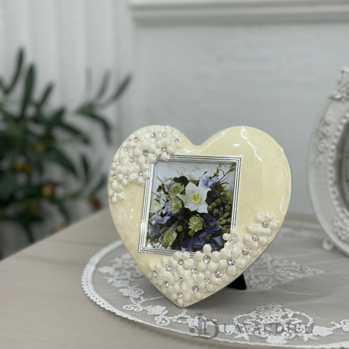 - 프랜치 엔틱 큐빅실버 하트액자 고급 탁상용 프레임 인테리어 소품