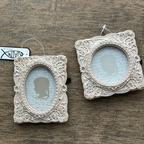 - 빈티지 엔틱 실버 천사 미니 증명사진 액자 특이한 탁상 액자 2개 set
