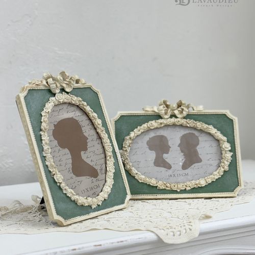 - 프랜치 엔틱 아이보리 로얄 고급 사각원형 액자 탁상용 프레임 2사이즈 인테리어 소품