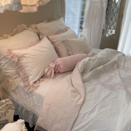 - 고급 자수 핑크 베딩세트 베개커버 SS Q K 사이즈 프렌치침구