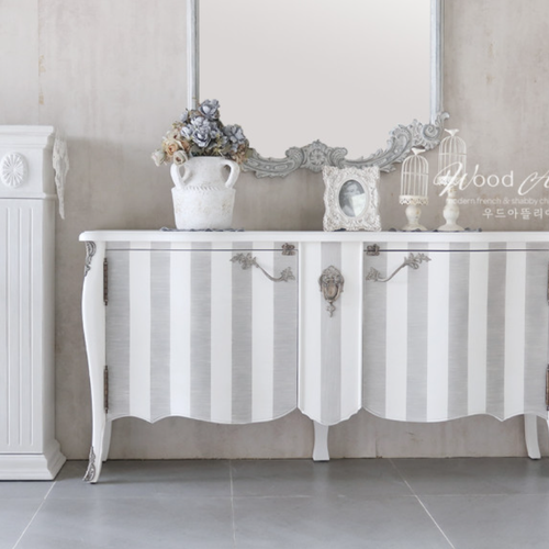 - 벨라 체스트 3가지 사이즈(가로 150/170/200) color 그레이 스트라이프 콘솔 장식장 TV스탠드 다이 쉐비시크 거실장