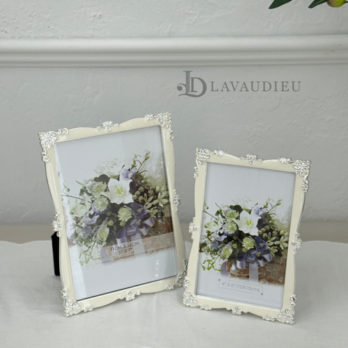 - 프랜치 엔틱 아이보리 로얄 플로럴 고급 사각액자 탁상용 프레임 2사이즈