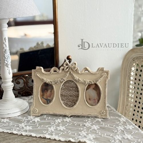- 프렌치 빈티지 탁상 가로형 프레임 액자 3구 레진 로즈 가랜드