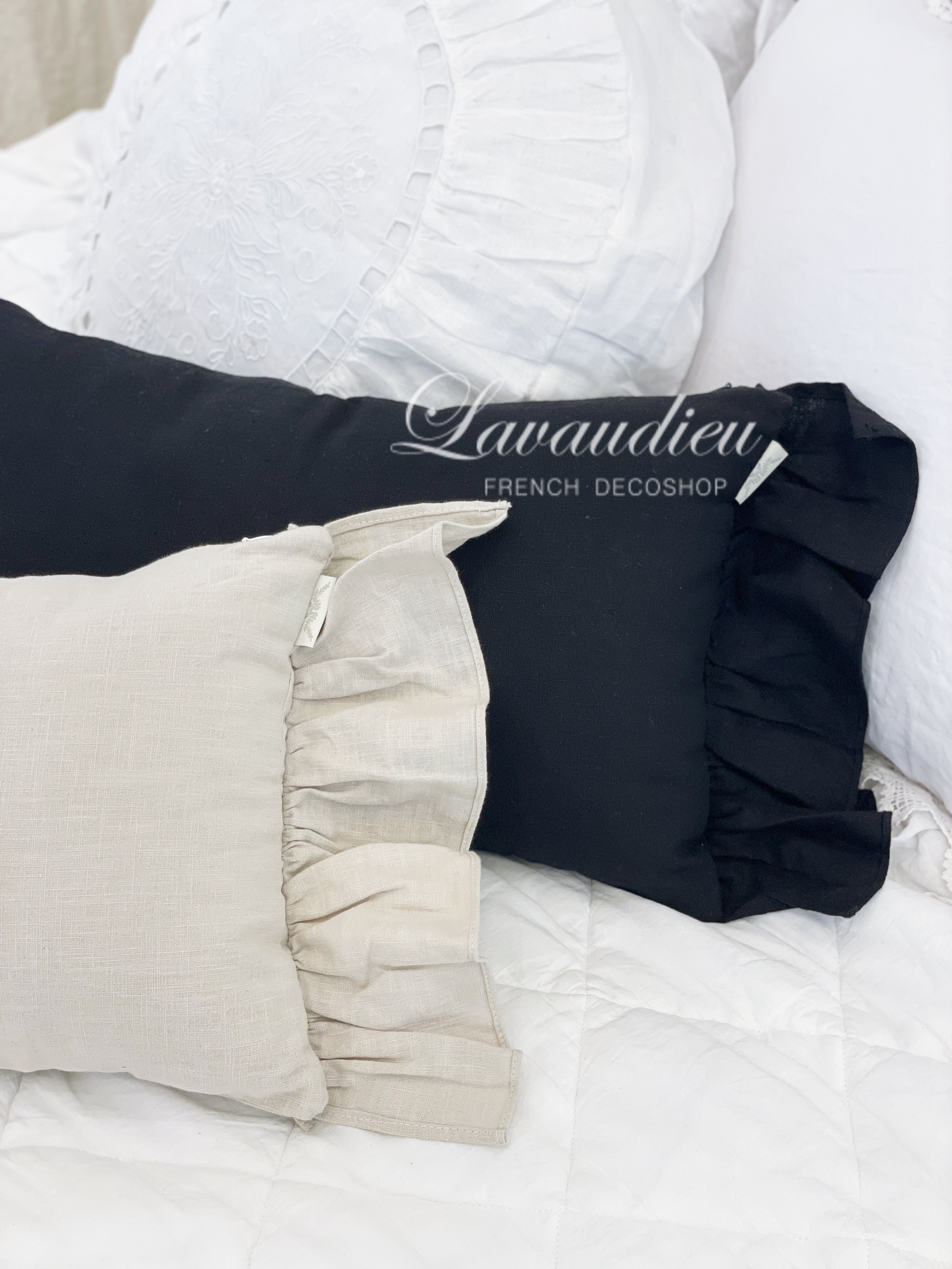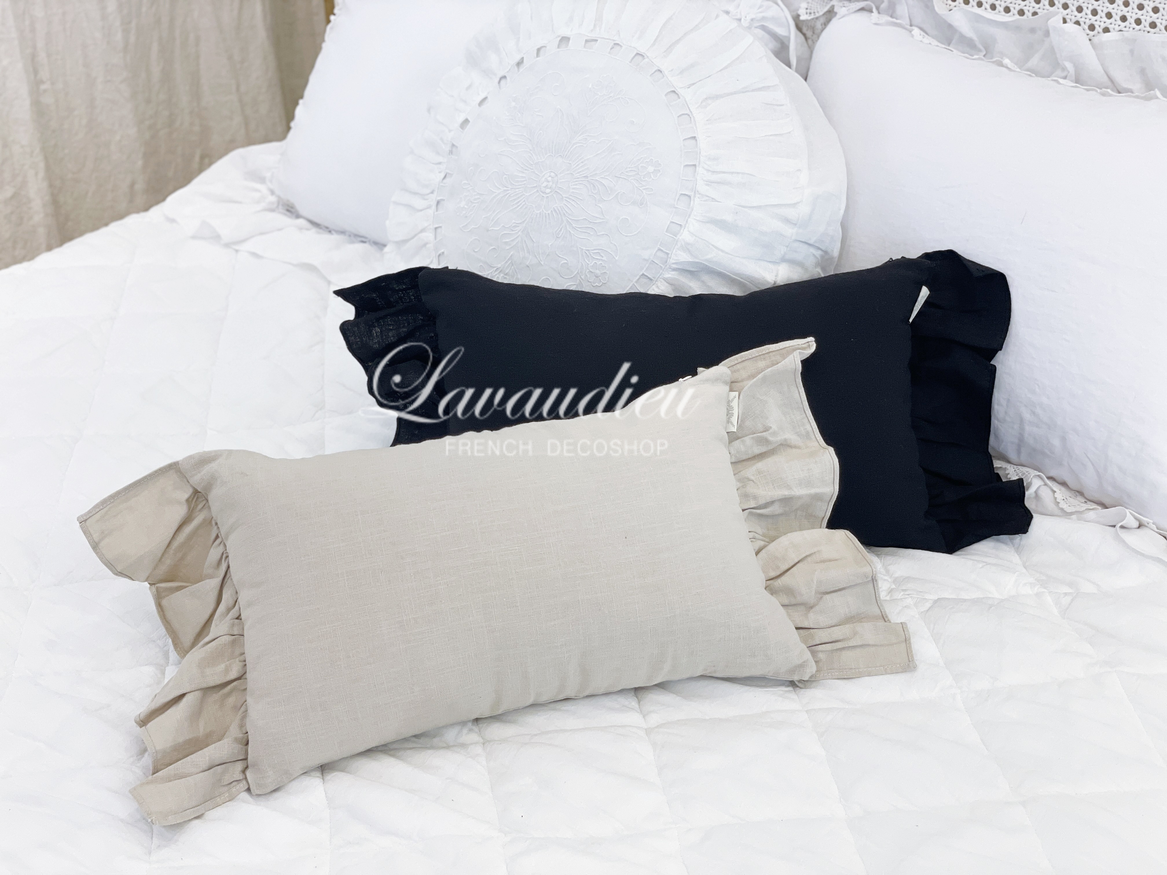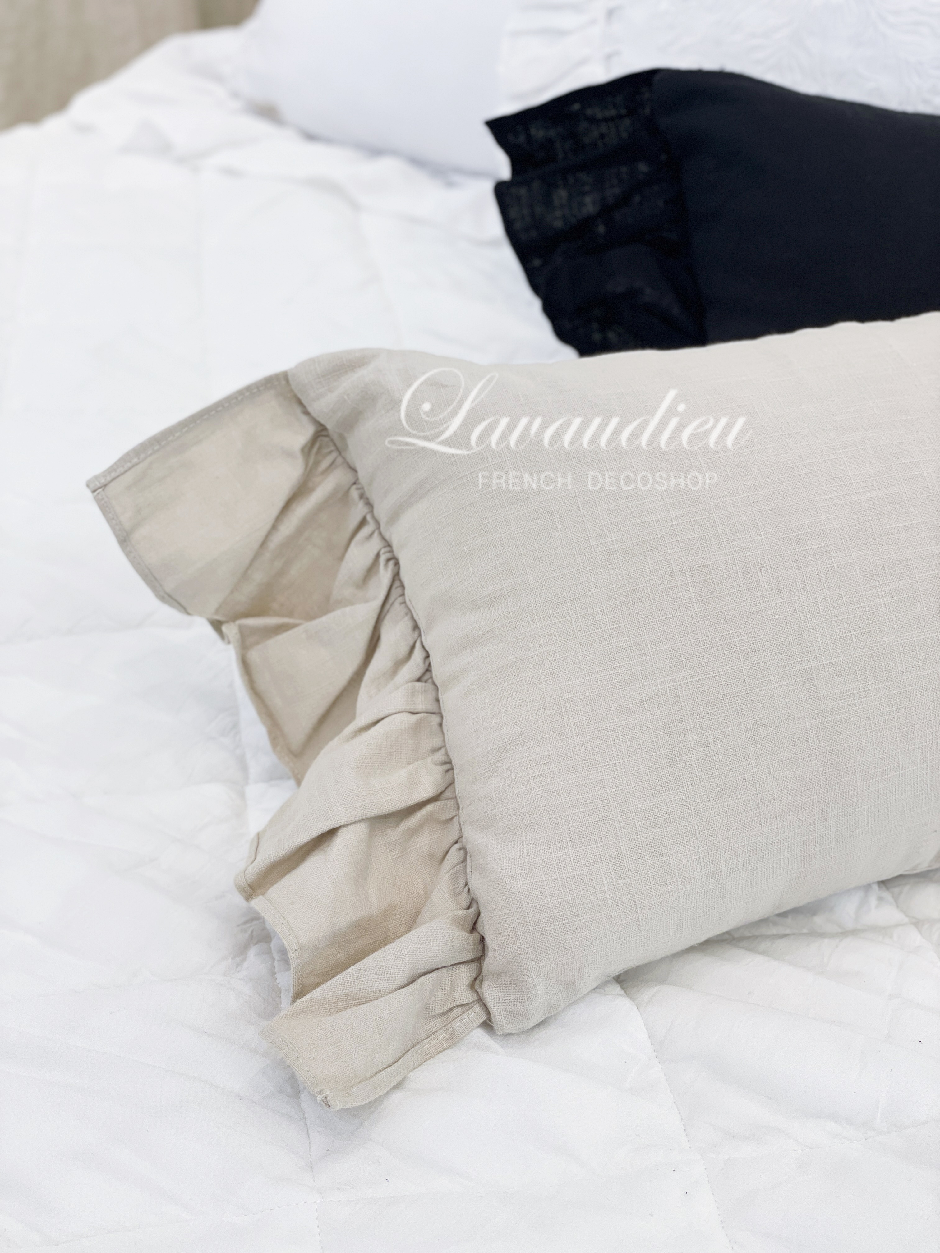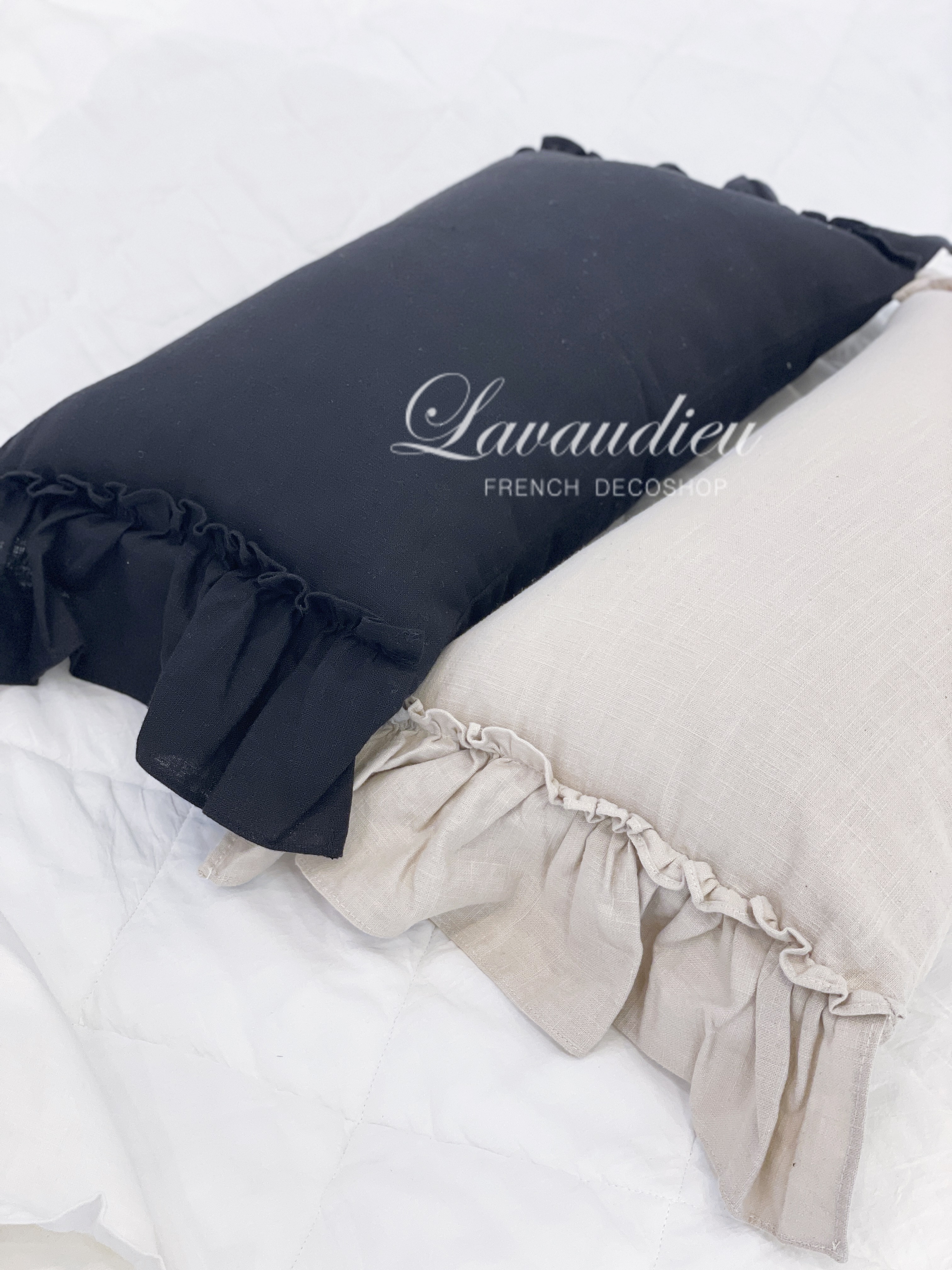 리투아니아 린넨 원단으로 만들어진 프릴 쿠션 커버입니다.