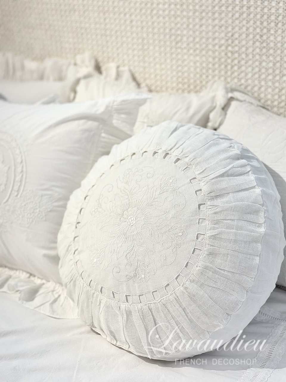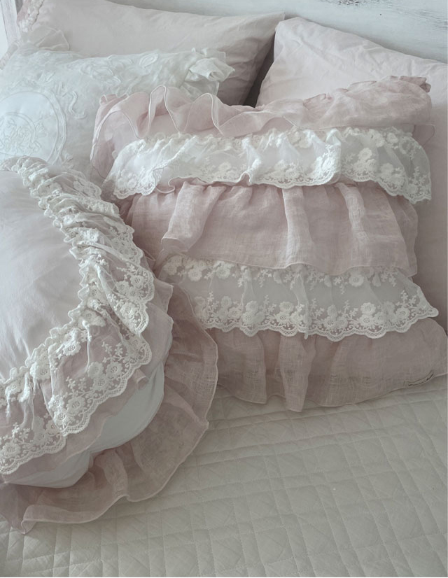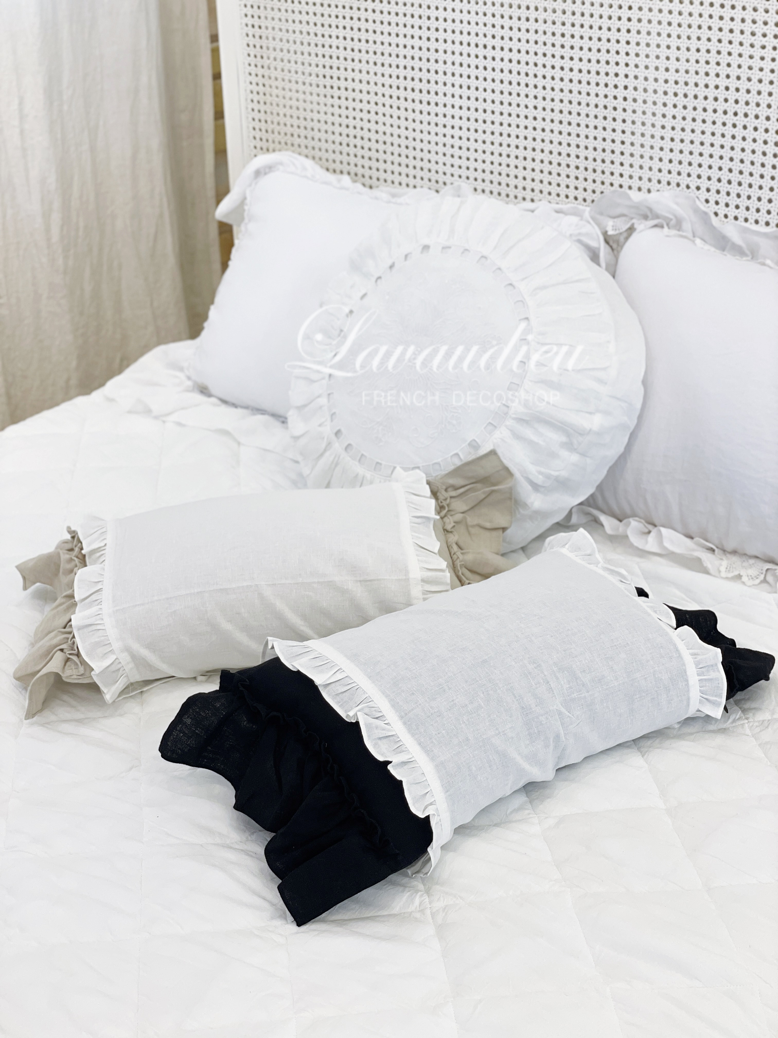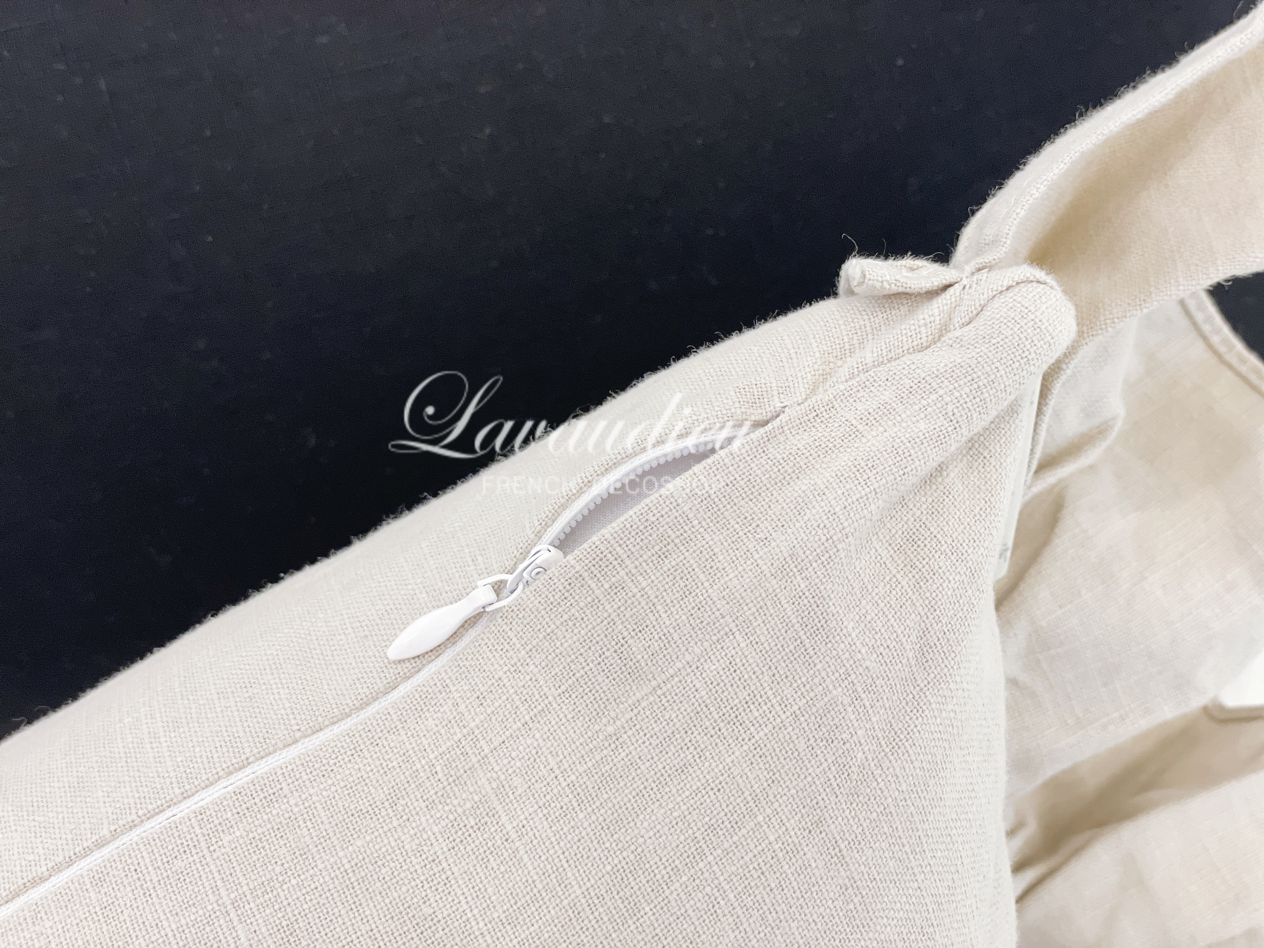 리투아니아 린넨 원단으로 만들어진 프릴 쿠션 커버입니다.