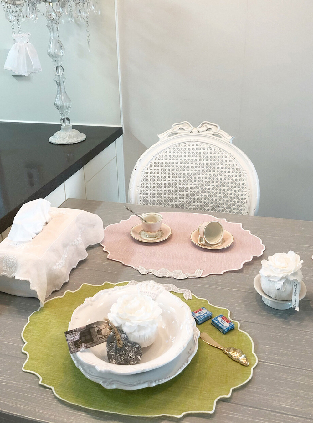 HOME > 홈패브릭 커텐 발매트 > 레이스매트,테이블매트 > 리본 리넨 테이블러너 테이블매트 그린