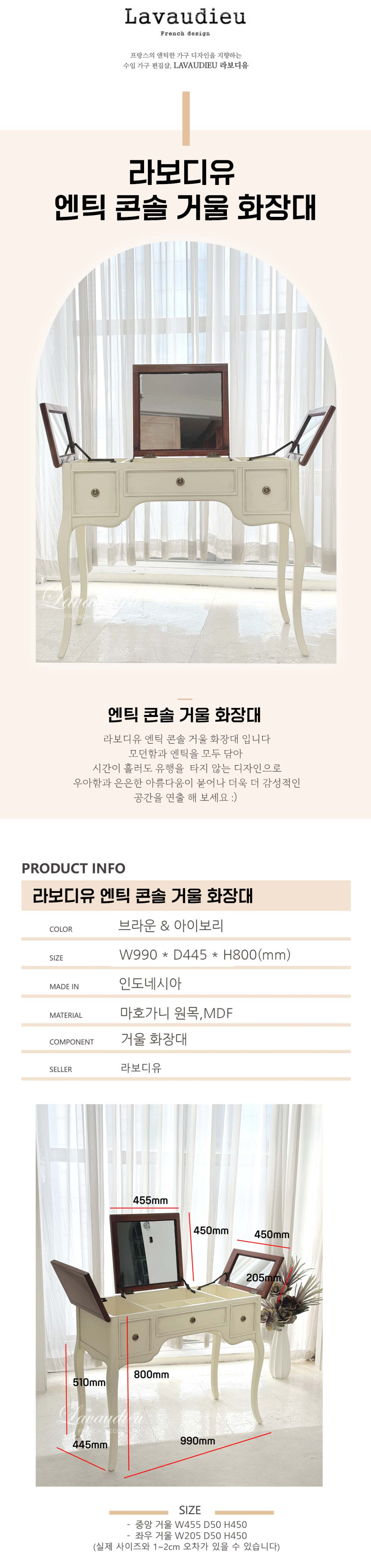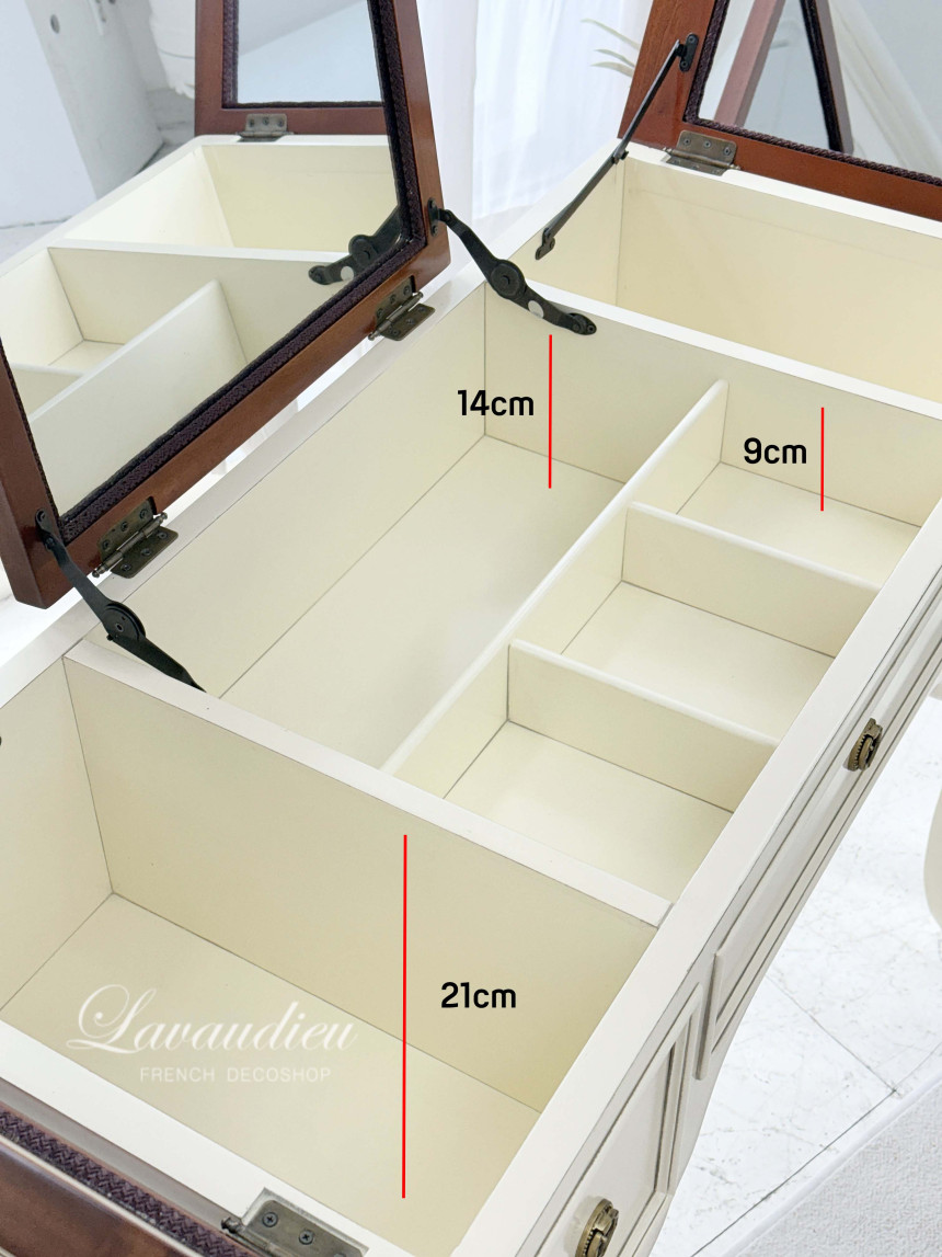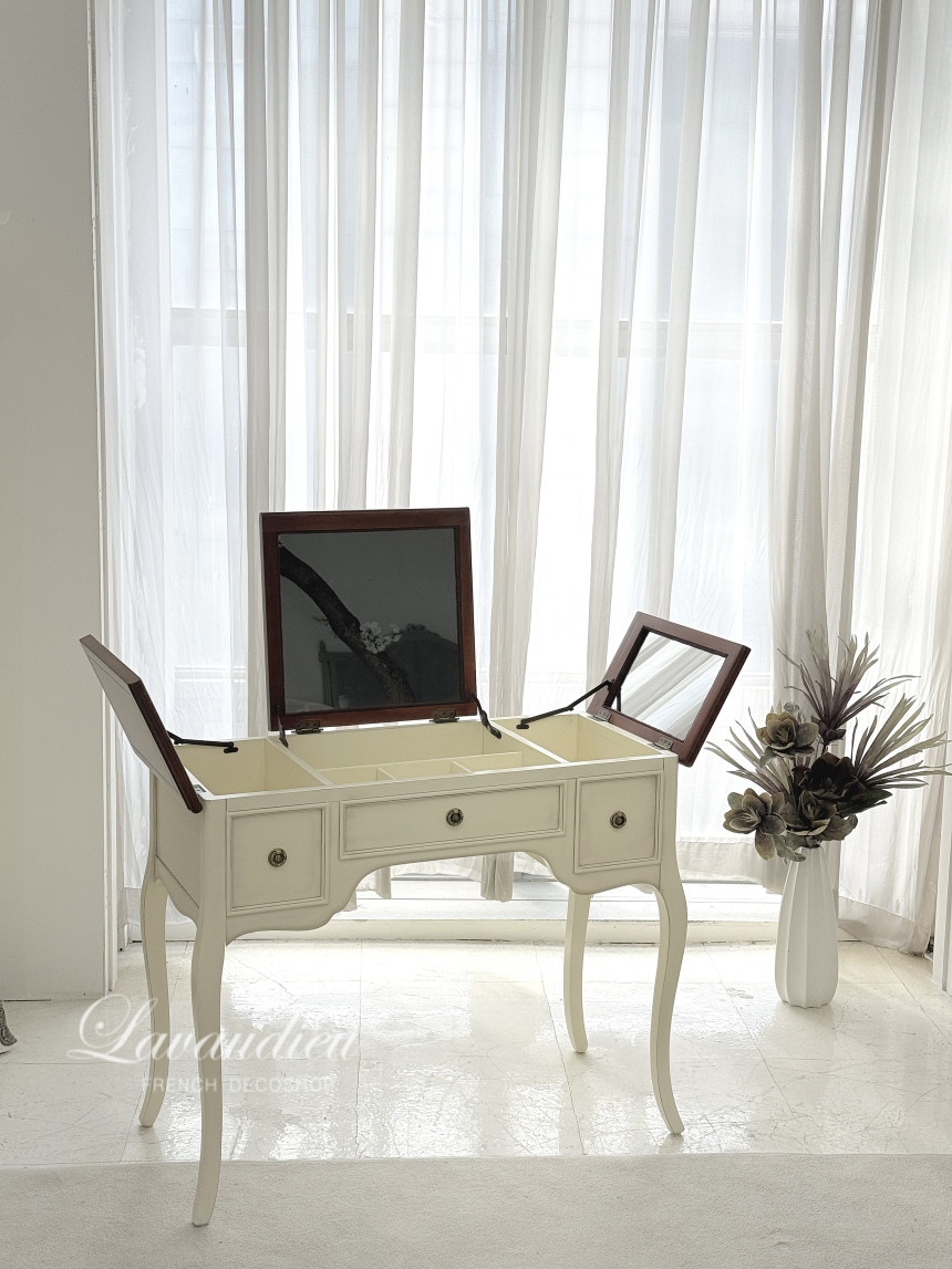 거울부분을 오픈하거나 닫아서 사용할 수 있는 실용적인 화장대입니다 :)