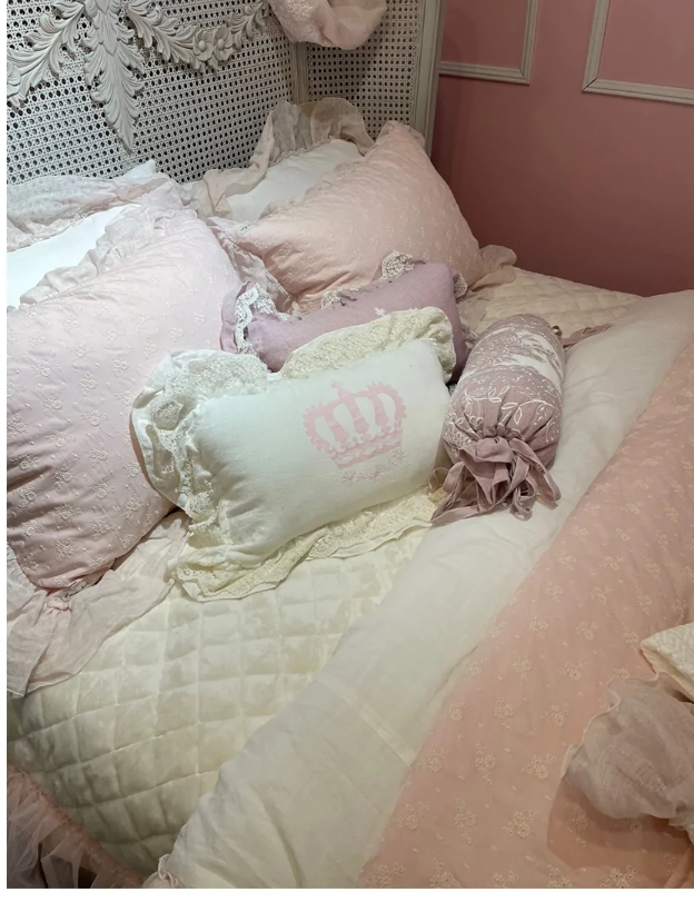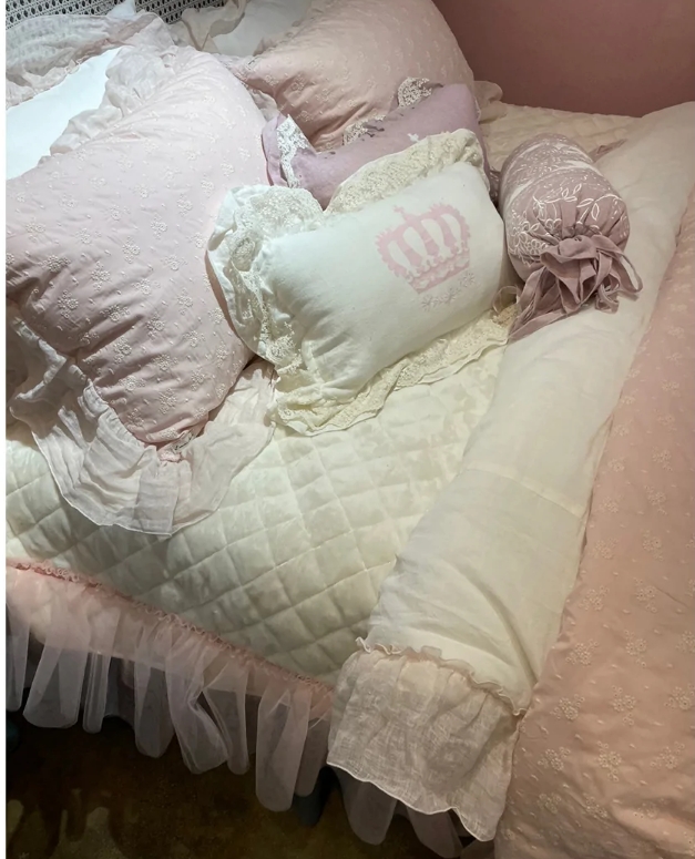 HOME > 침구,쿠션,커버류 > 침구세트,차렵이불,홑이불 > 프렌치 침구 이자벨 아이보리 핑크 프릴 스프레드 밍크 패드