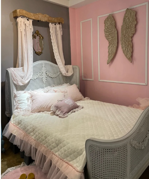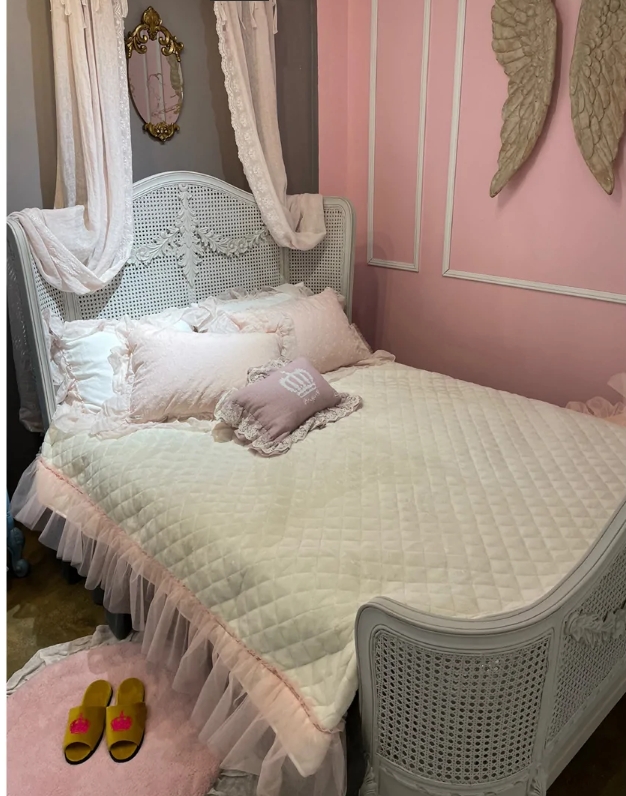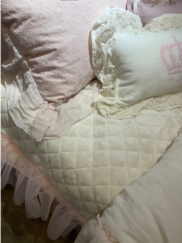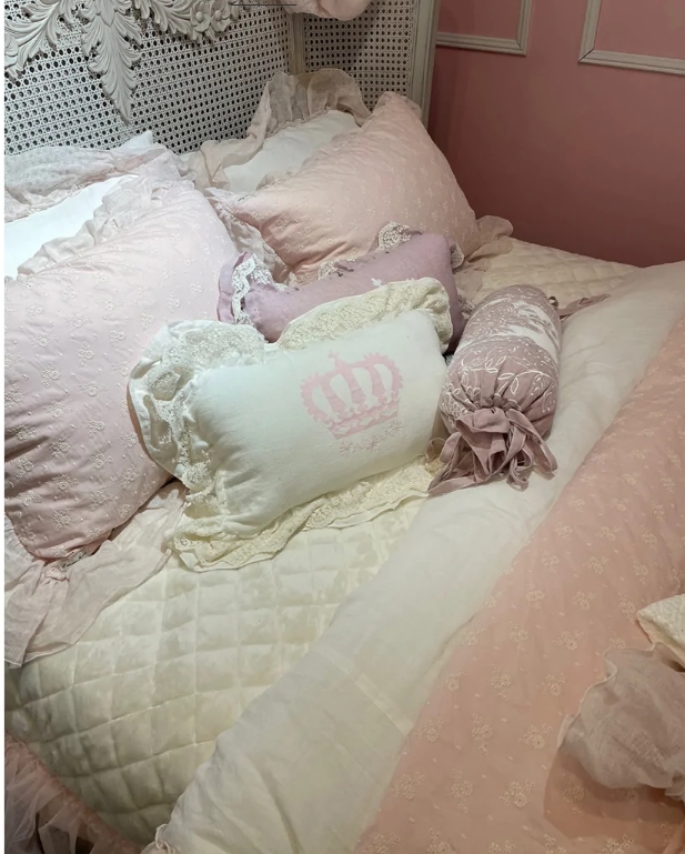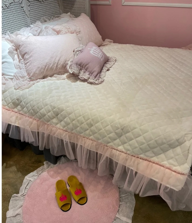 프렌치 침구 이자벨 아이보리 핑크 프릴 스프레드 밍크 패드