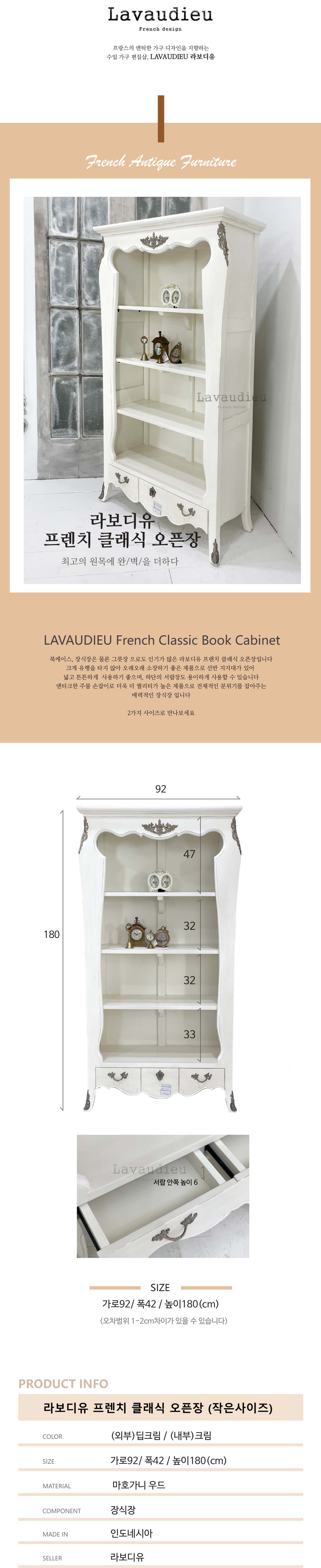 프렌치 클래식 오픈 수납장그릇장 화이트 프렌치 쉐비가구