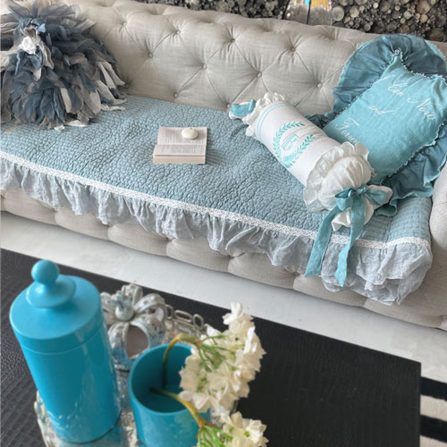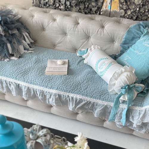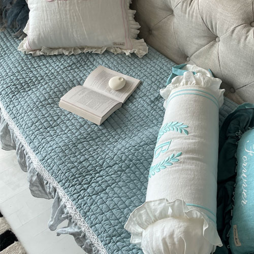 HOME > 홈패브릭 커텐 발매트 > 소파패드 > 사계절 코튼 퀼팅 쇼파패드 블루 프렌치스타일3인4인 프릴쇼파패드