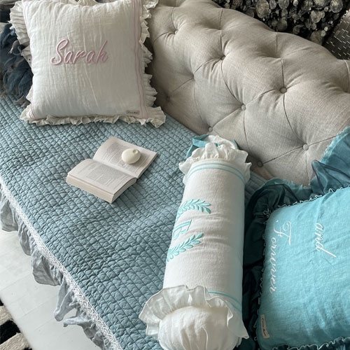 사계절 코튼 퀼팅 쇼파패드 블루 프렌치스타일3인4인 프릴쇼파패드