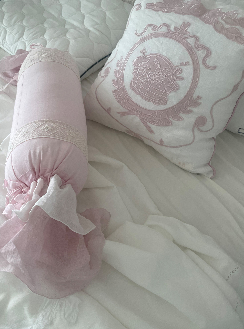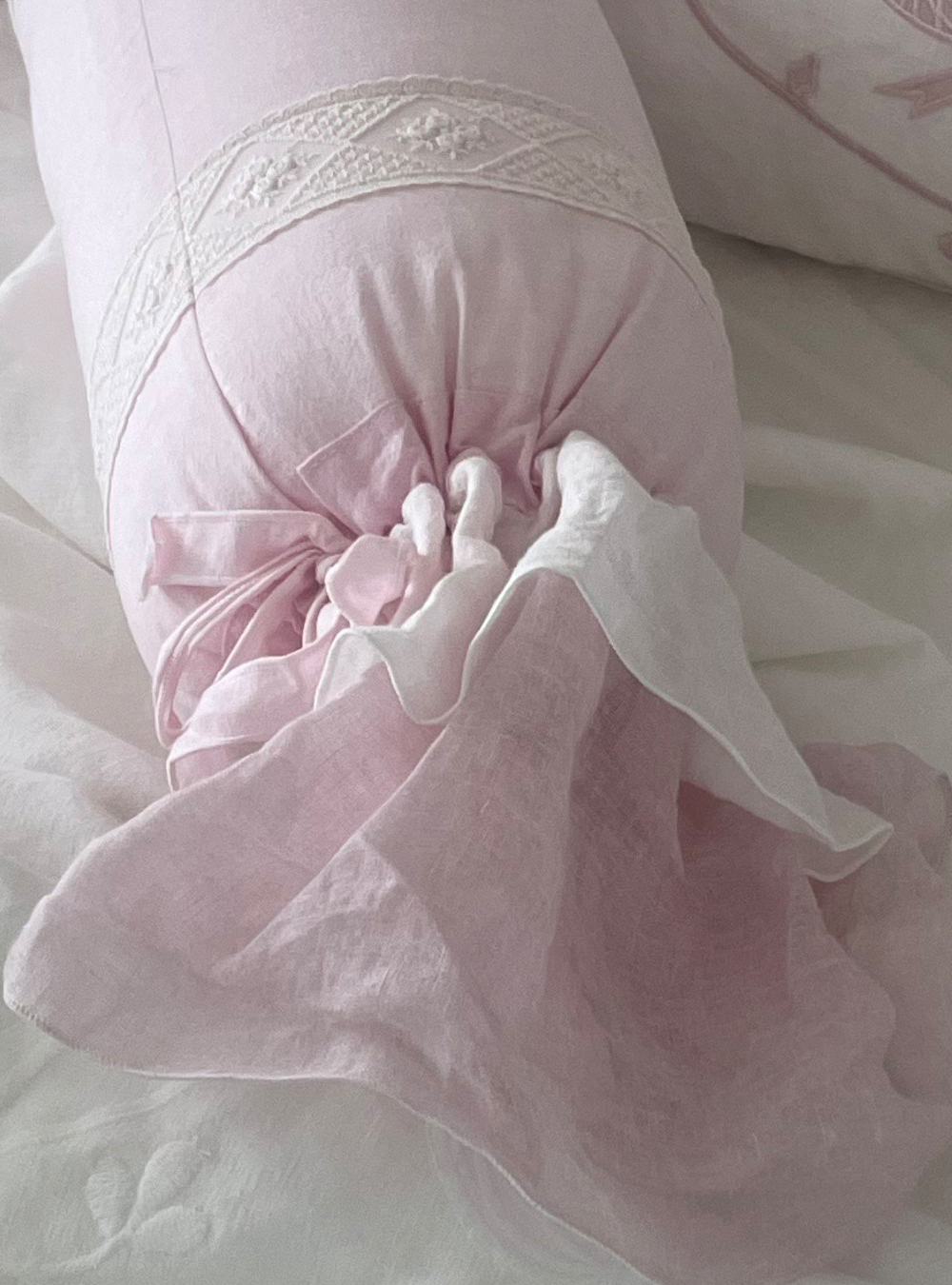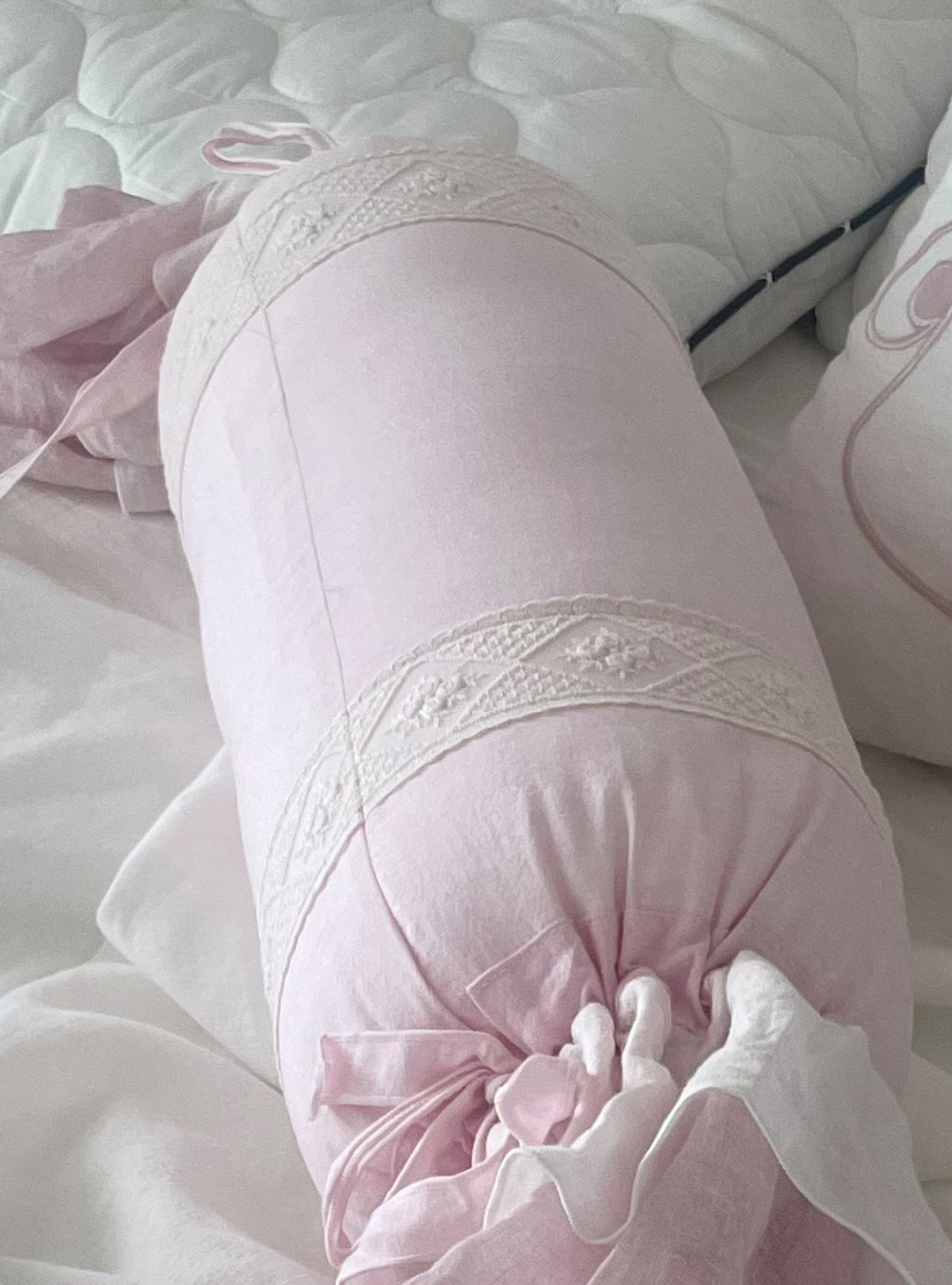 HOME > 침구,쿠션,커버류 > 쿠션 > 캔디쿠션 > 프렌치 릴렉스 바디폼 핑크 리넨 캔디 쿠션 홈패브릭 마이크로화이버솜포함