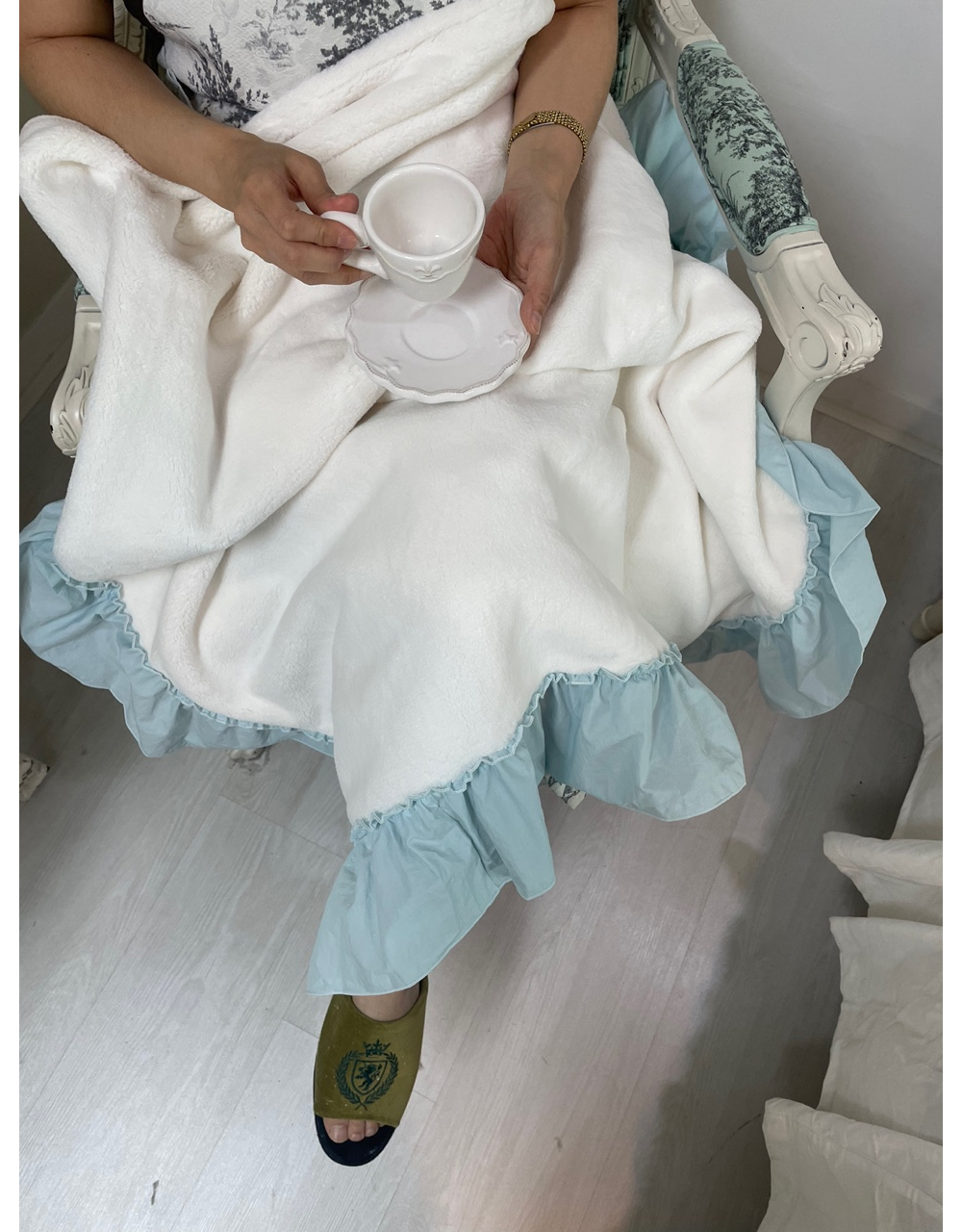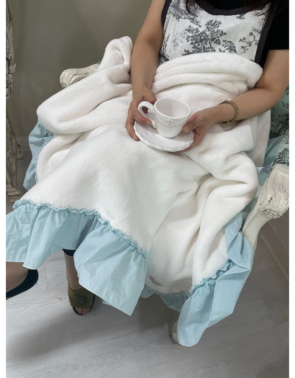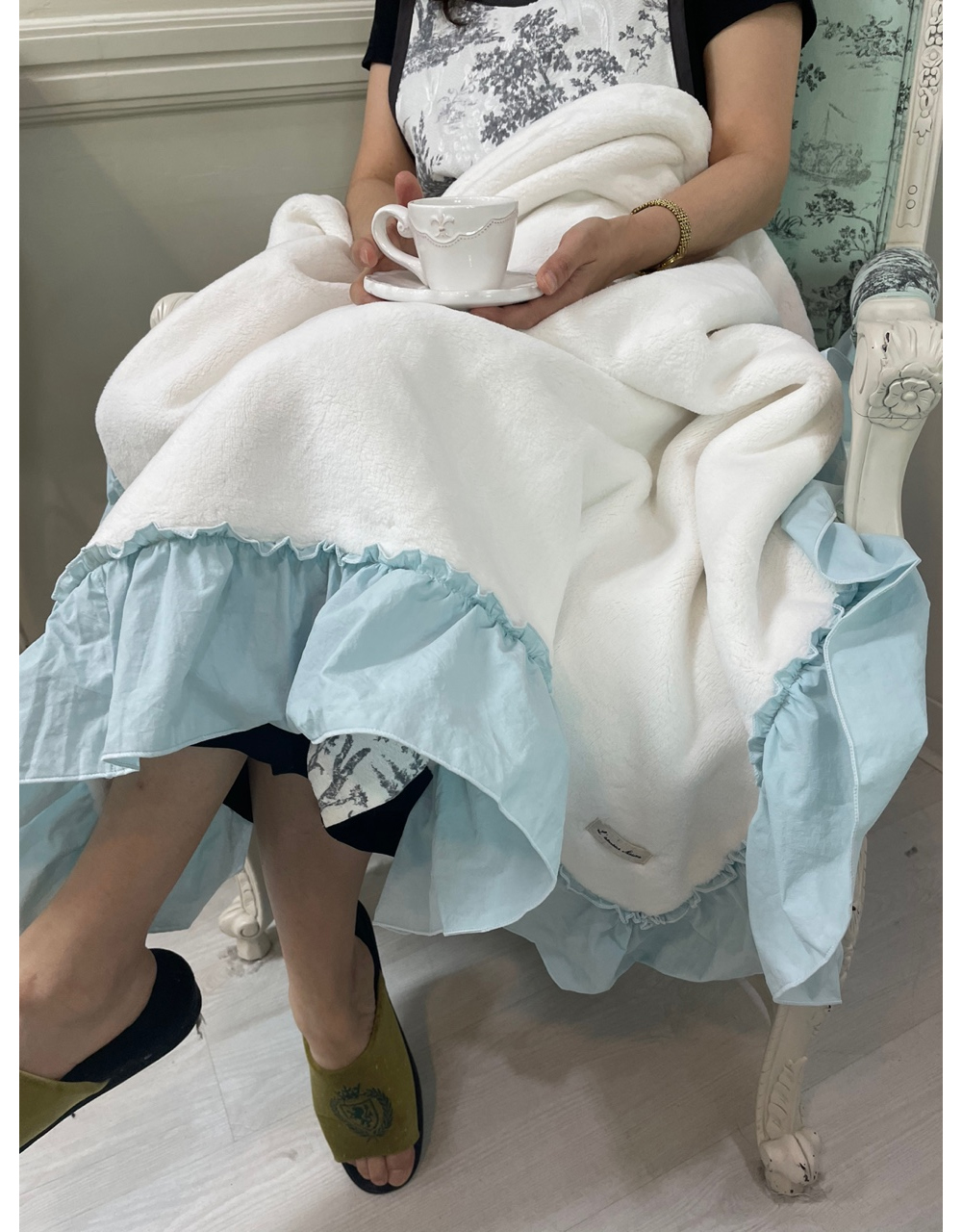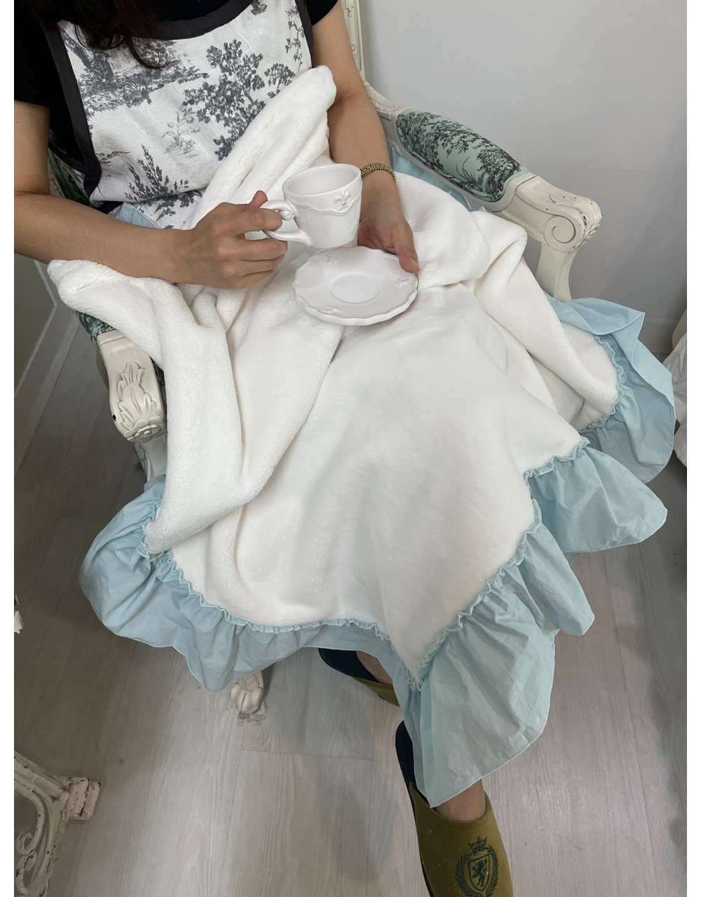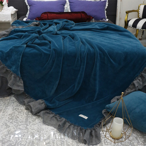 프렌치 침구 헤라 블루 프릴 밍크 퍼 미니블랭킷 담요 겨울이불