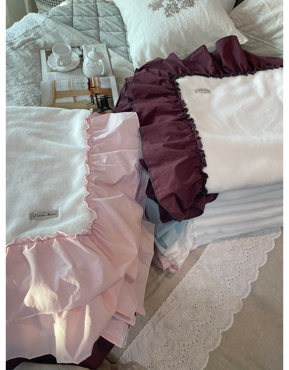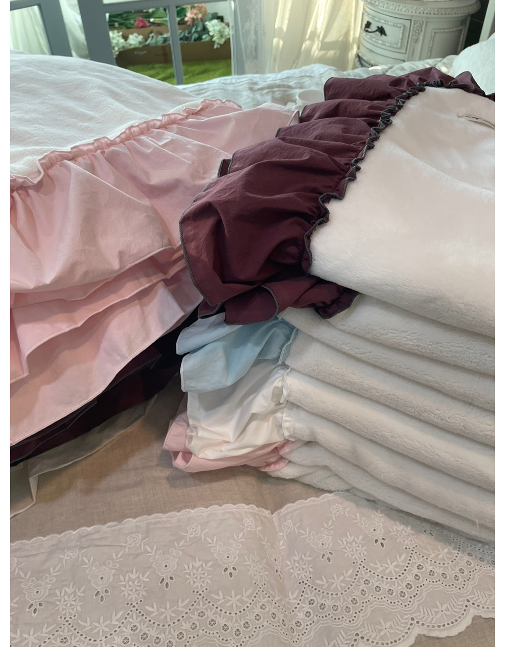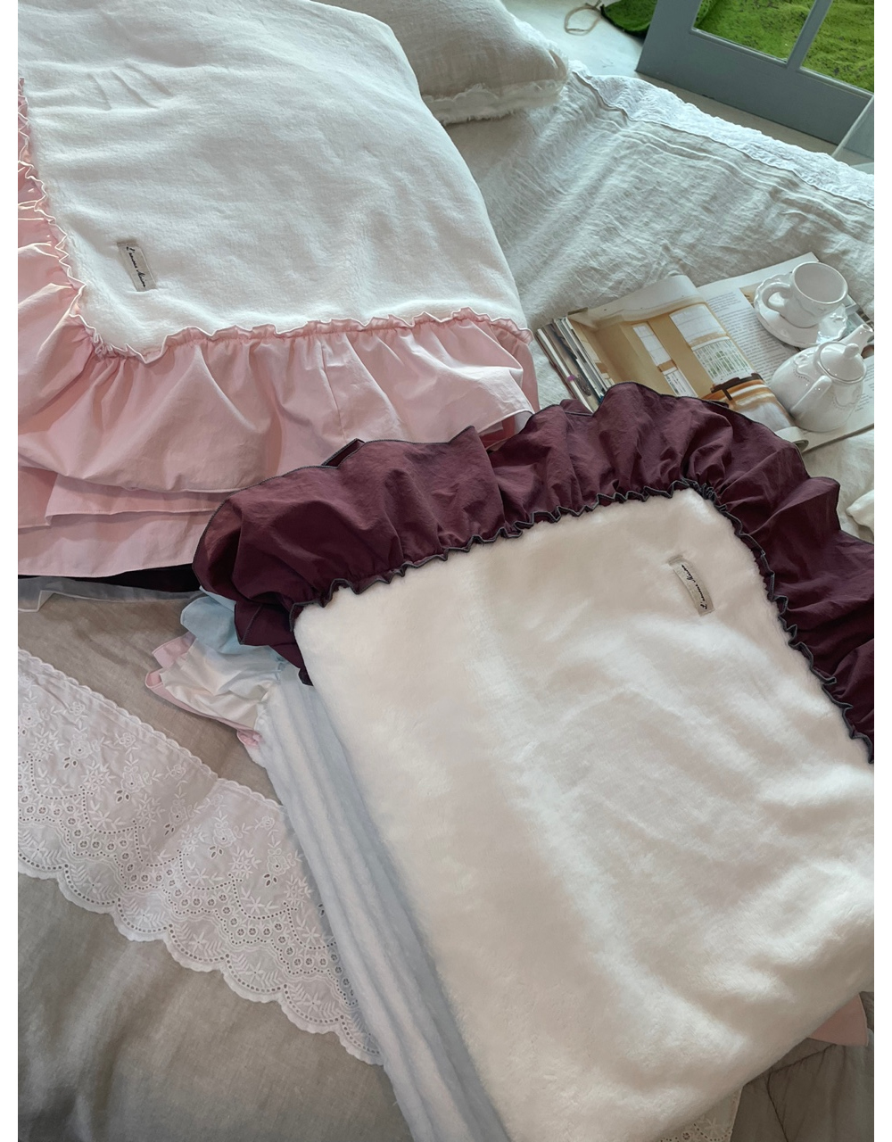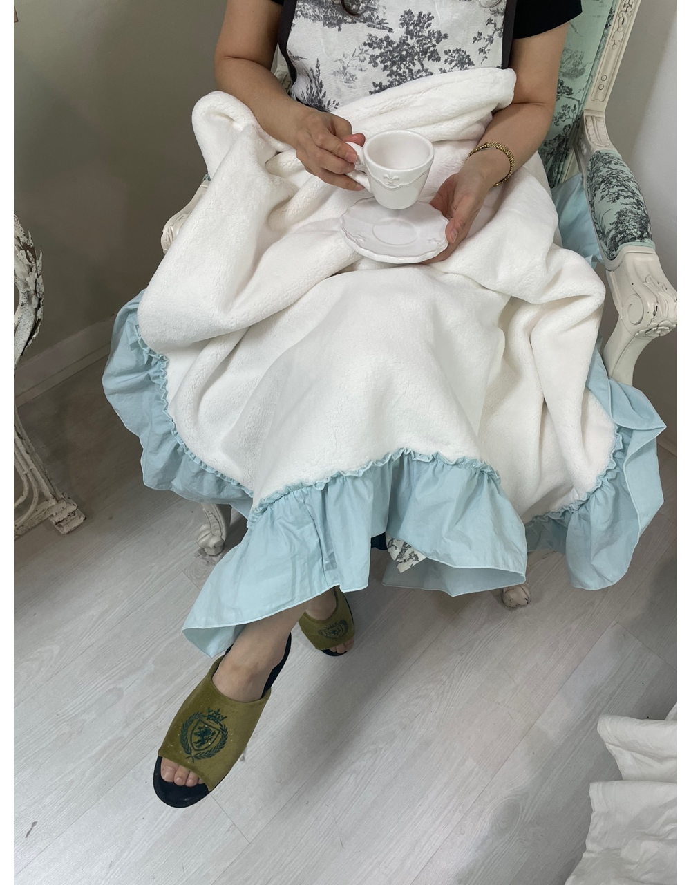 프렌치 침구 헤라 블루 프릴 밍크 퍼 미니블랭킷 담요 겨울이불