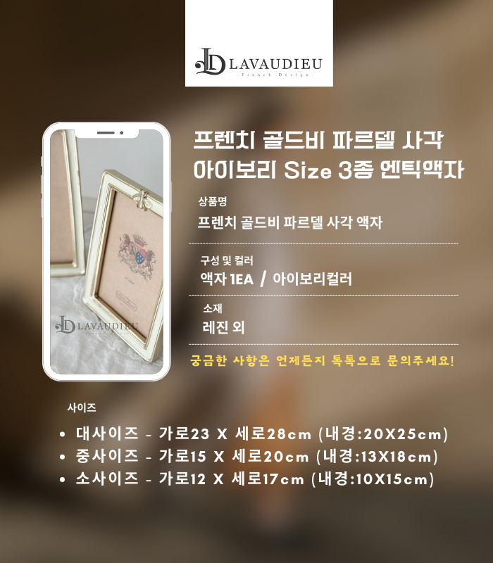 프렌치 골드비 파르델 사각 아이보리 Size 3종 엔틱액자 인테리어 소품