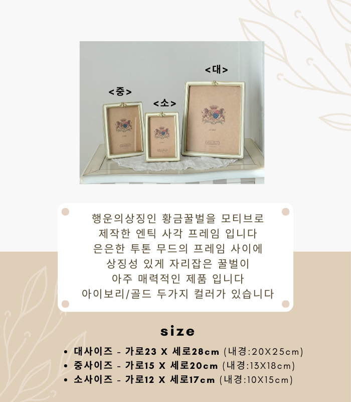 HOME > 액자,거울,시계,엔틱소품 > 거울,액자 > 액자,벽장식 > 프렌치 골드비 파르델 사각 아이보리 Size 3종 엔틱액자 인테리어 소품